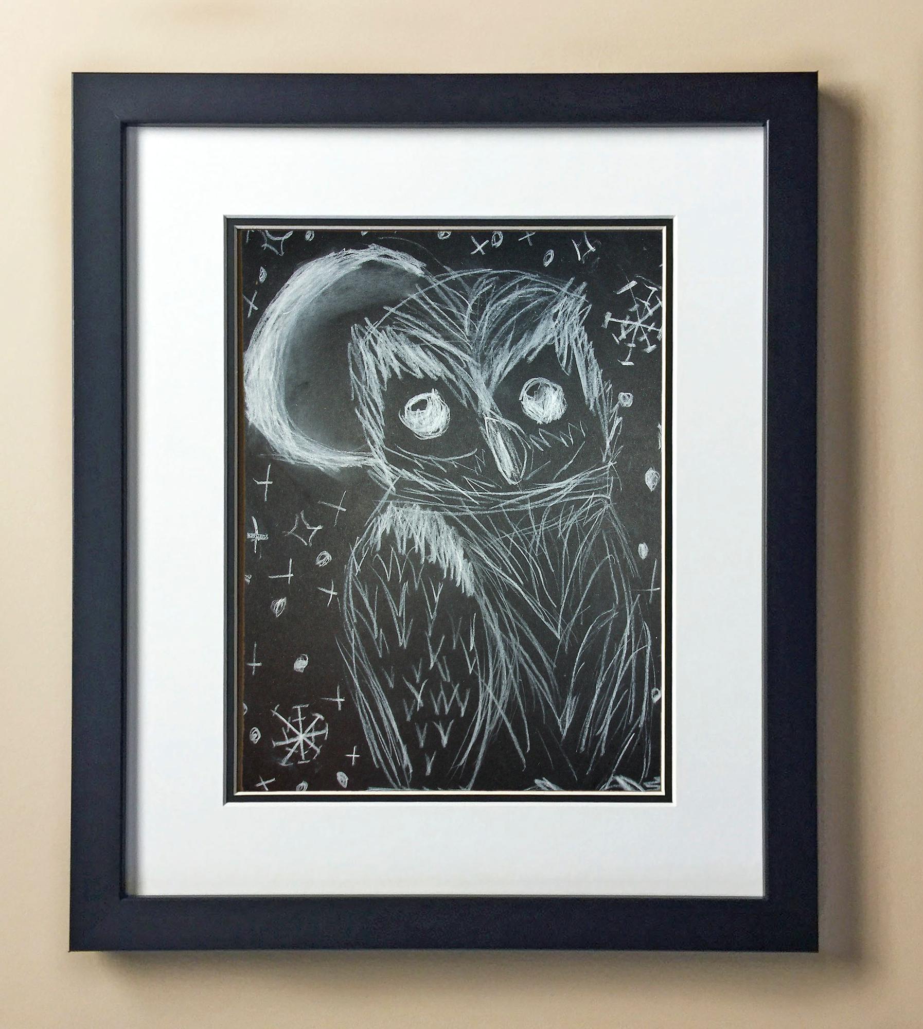 Included with the purchase is the Students Artwork, Frame, double matboard, shatter proof plexiglass, and a ready to hang backerboard with turnbuttons