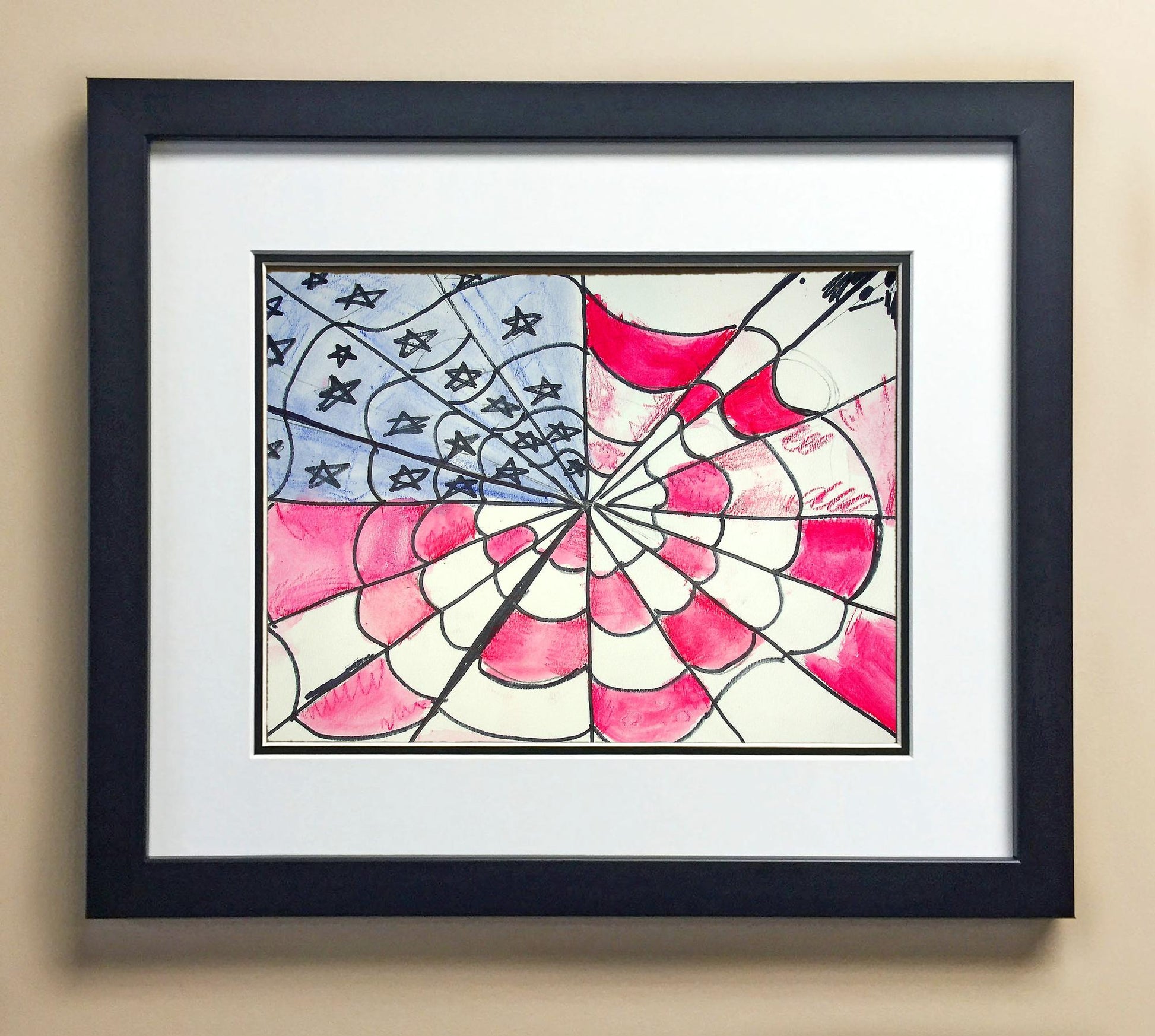 Included with the purchase is the Students Artwork, Frame, double matboard, shatter proof plexiglass, and a ready to hang backerboard with turnbuttons