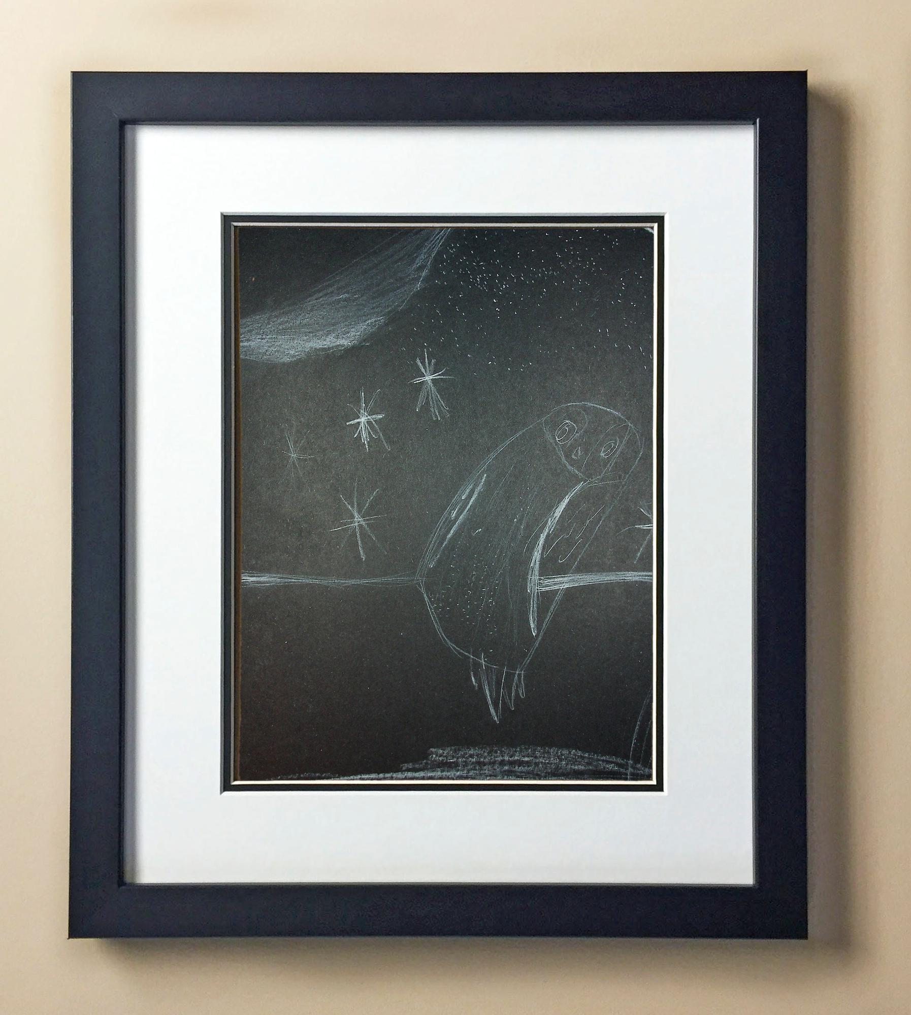 Included with the purchase is the Students Artwork, Frame, double matboard, shatter proof plexiglass, and a ready to hang backerboard with turnbuttons