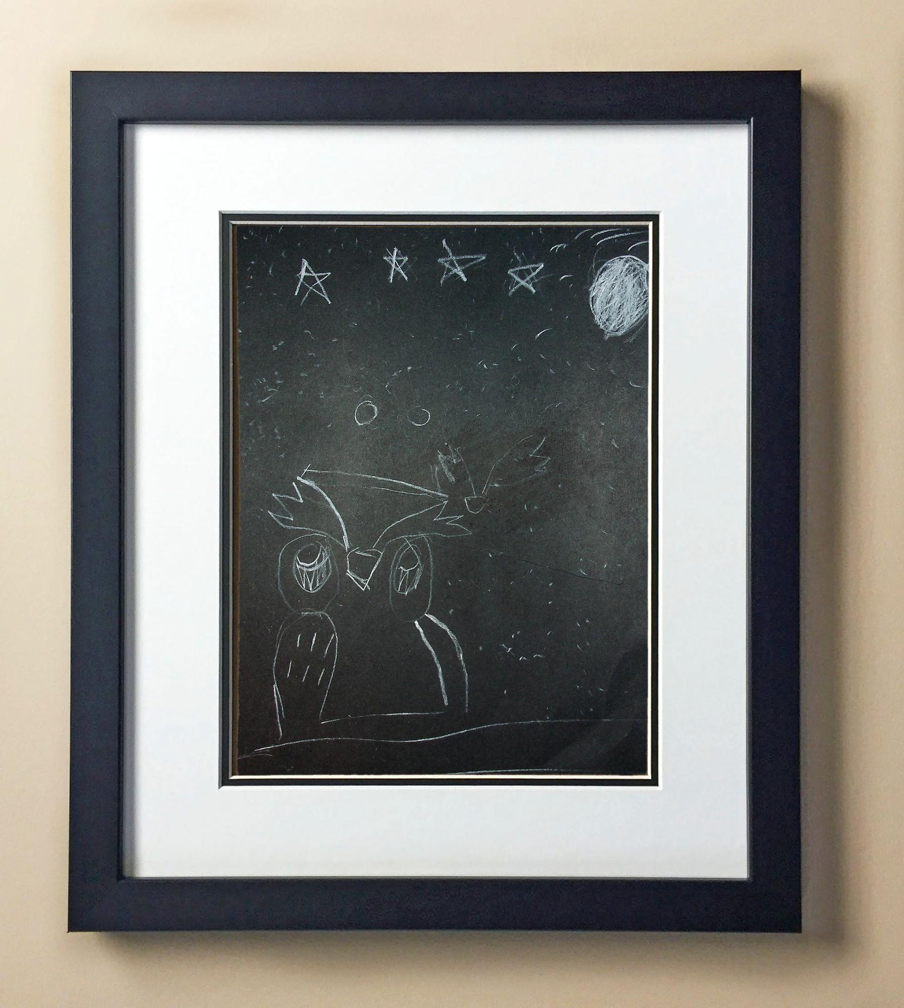 Included with the purchase is the Students Artwork, Frame, double matboard, shatter proof plexiglass, and a ready to hang backerboard with turnbuttons