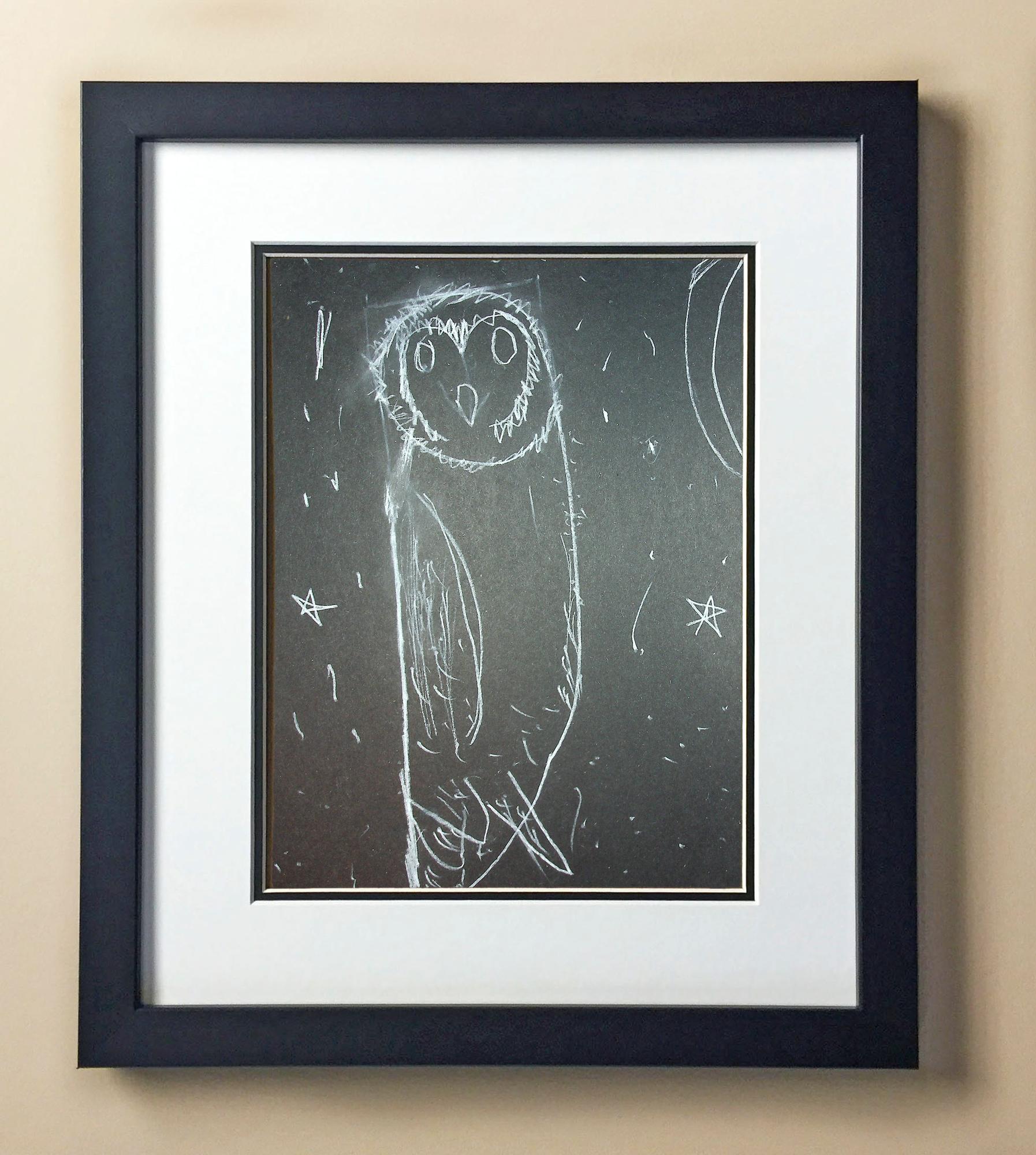 Included with the purchase is the Students Artwork, Frame, double matboard, shatter proof plexiglass, and a ready to hang backerboard with turnbuttons