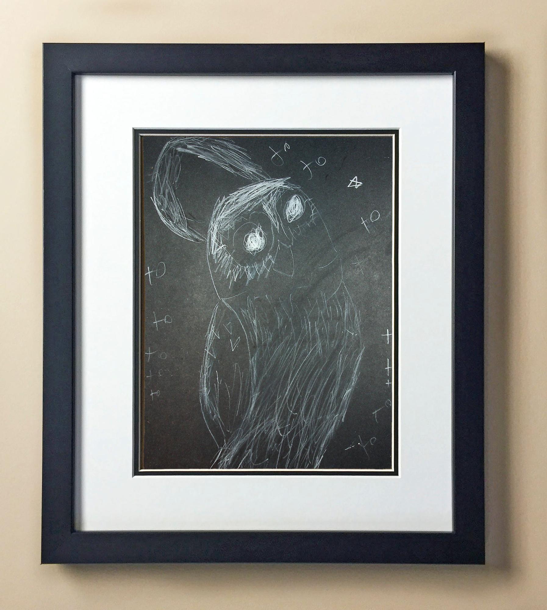 Included with the purchase is the Students Artwork, Frame, double matboard, shatter proof plexiglass, and a ready to hang backerboard with turnbuttons