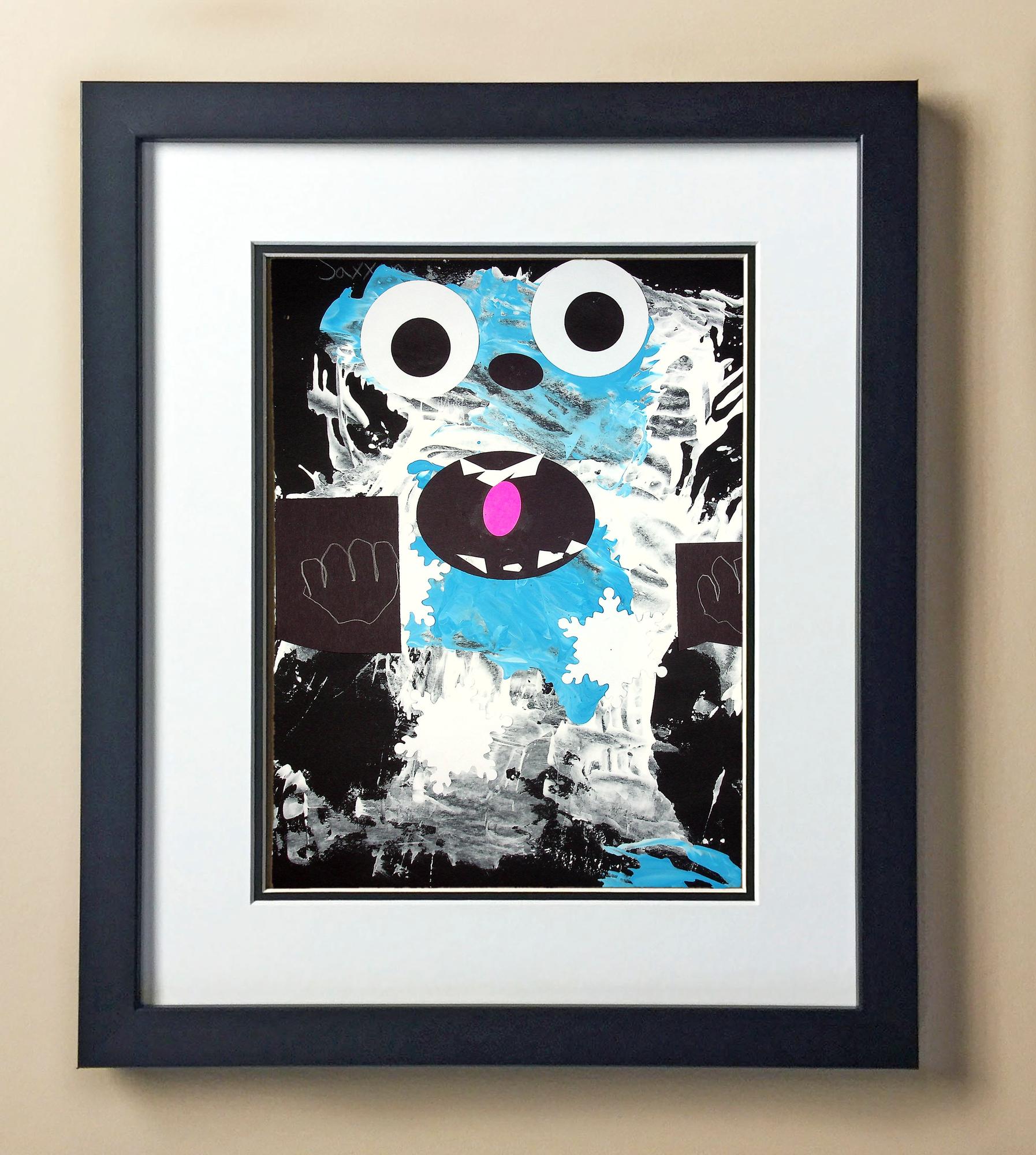 Included with the purchase is the Students Artwork, Frame, double matboard, shatter proof plexiglass, and a ready to hang backerboard with turnbuttons
