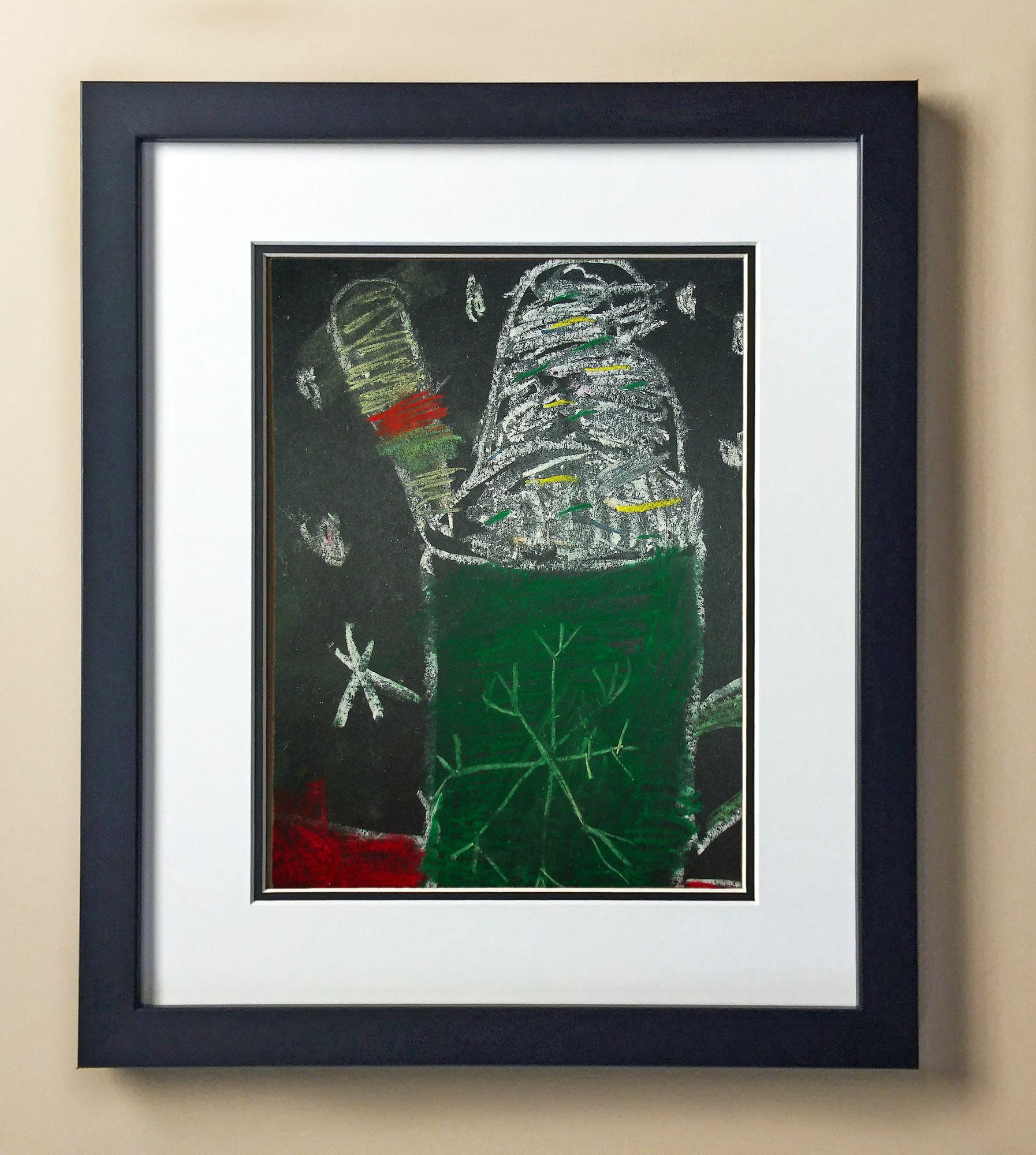Included with the purchase is the Students Artwork, Frame, double matboard, shatter proof plexiglass, and a ready to hang backerboard with turnbuttons
