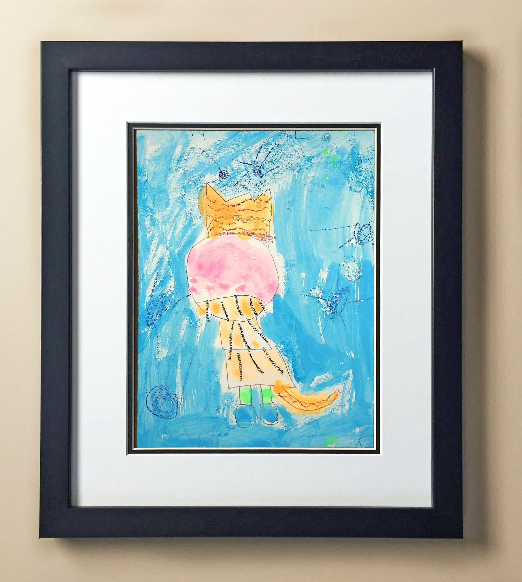 Included with the purchase is the Students Artwork, Frame, double matboard, shatter proof plexiglass, and a ready to hang backerboard with turnbuttons