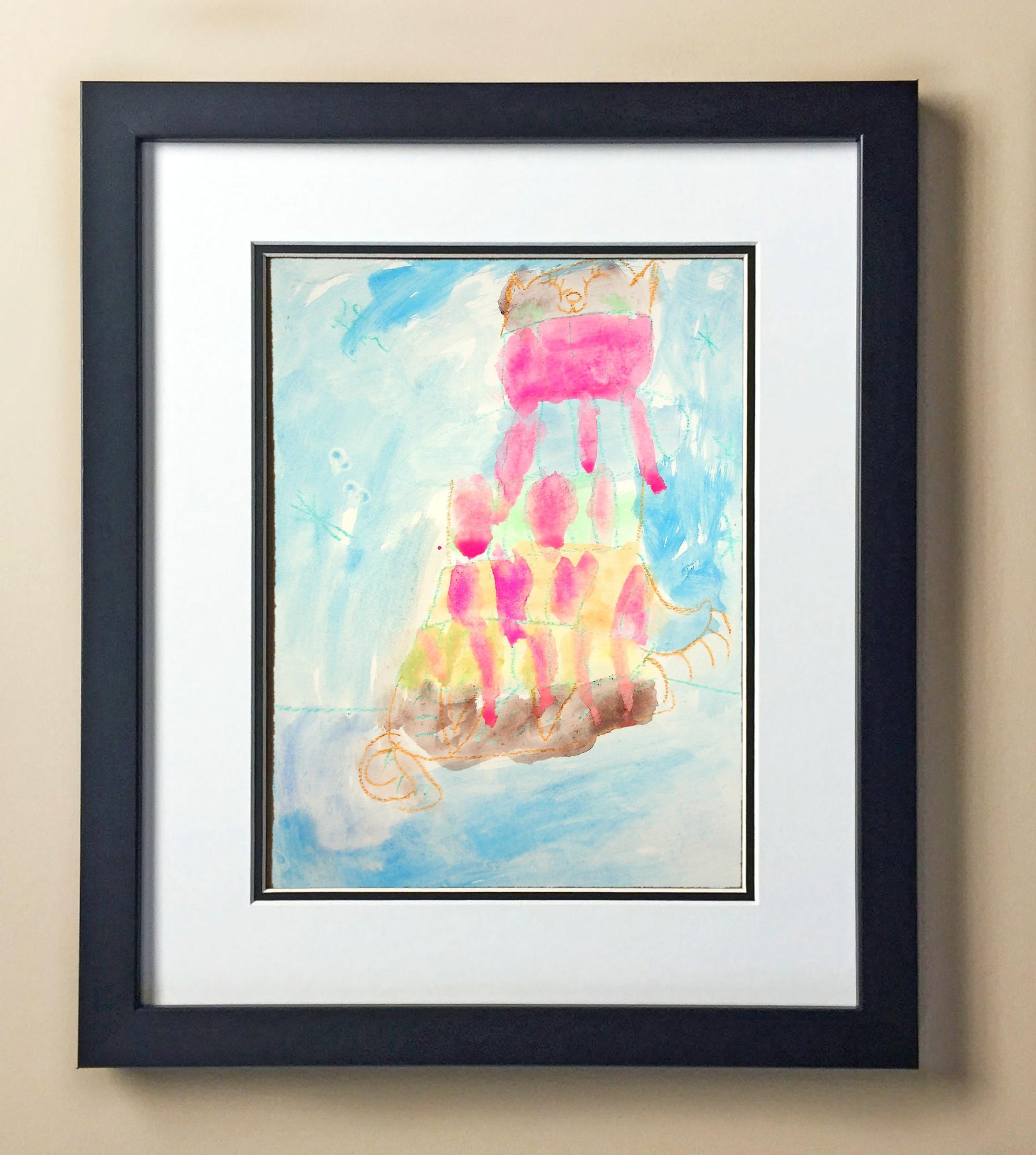 Included with the purchase is the Students Artwork, Frame, double matboard, shatter proof plexiglass, and a ready to hang backerboard with turnbuttons