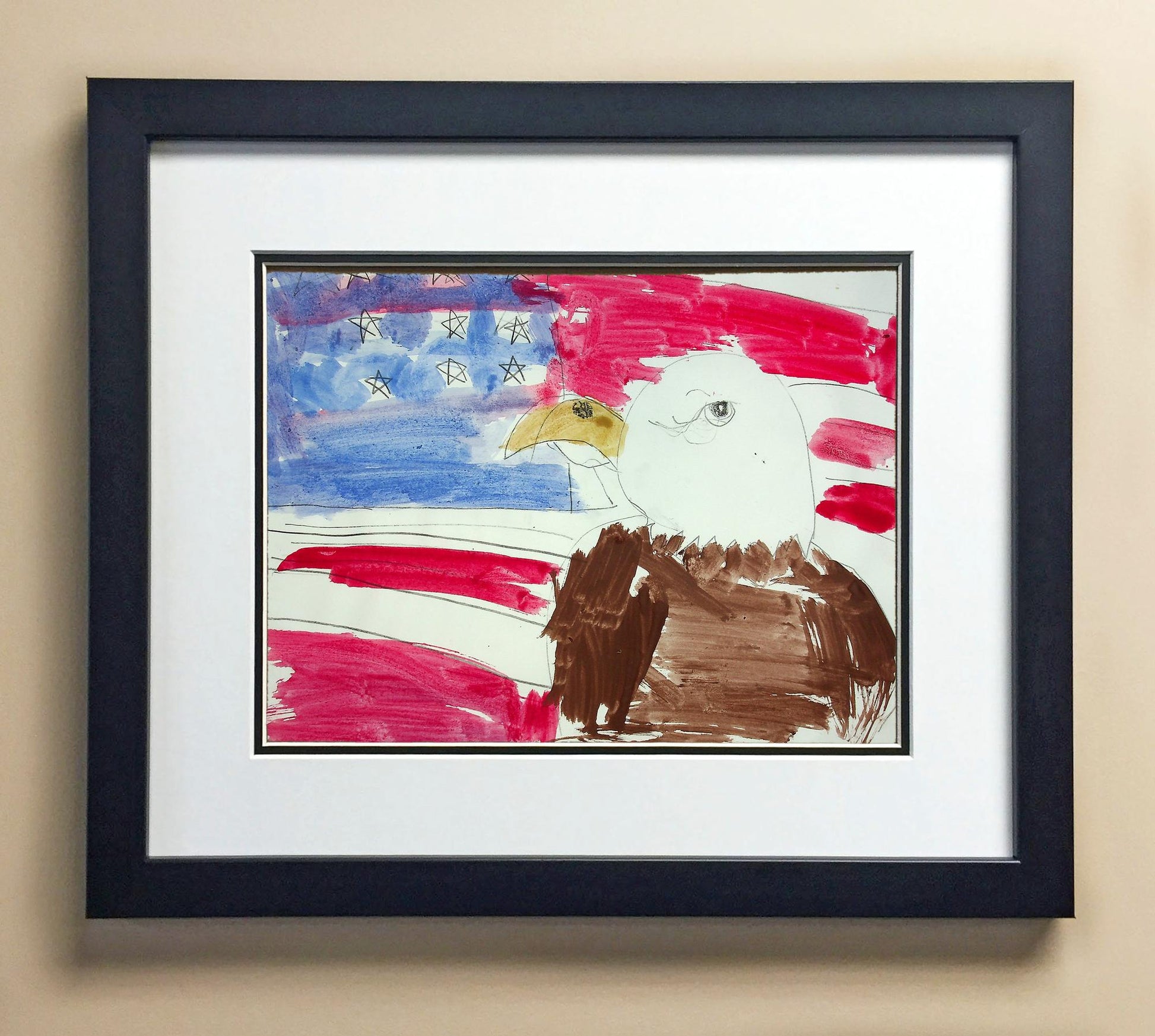 Included with the purchase is the Students Artwork, Frame, double matboard, shatter proof plexiglass, and a ready to hang backerboard with turnbuttons
