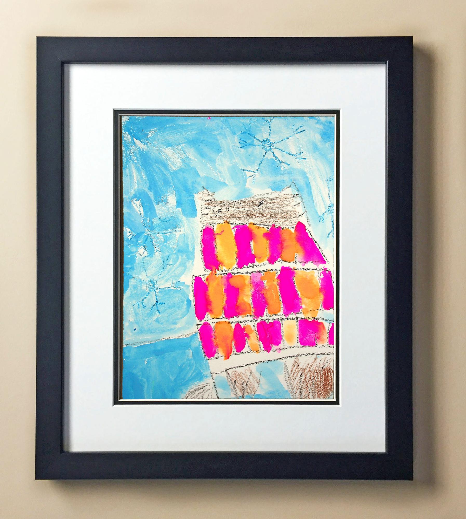 Included with the purchase is the Students Artwork, Frame, double matboard, shatter proof plexiglass, and a ready to hang backerboard with turnbuttons