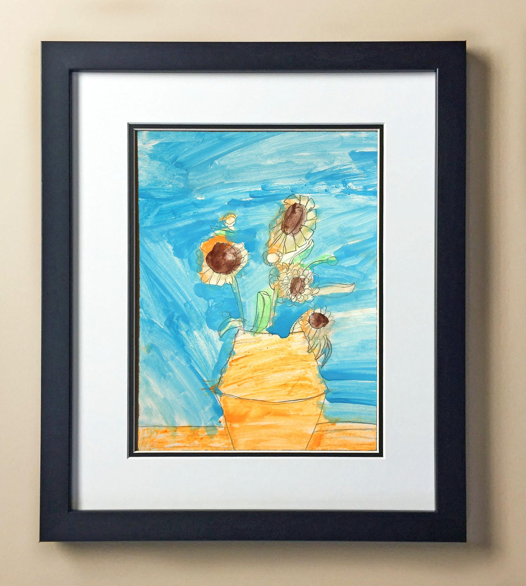 Included with the purchase is the Students Artwork, Frame, double matboard, shatter proof plexiglass, and a ready to hang backerboard with turnbuttons