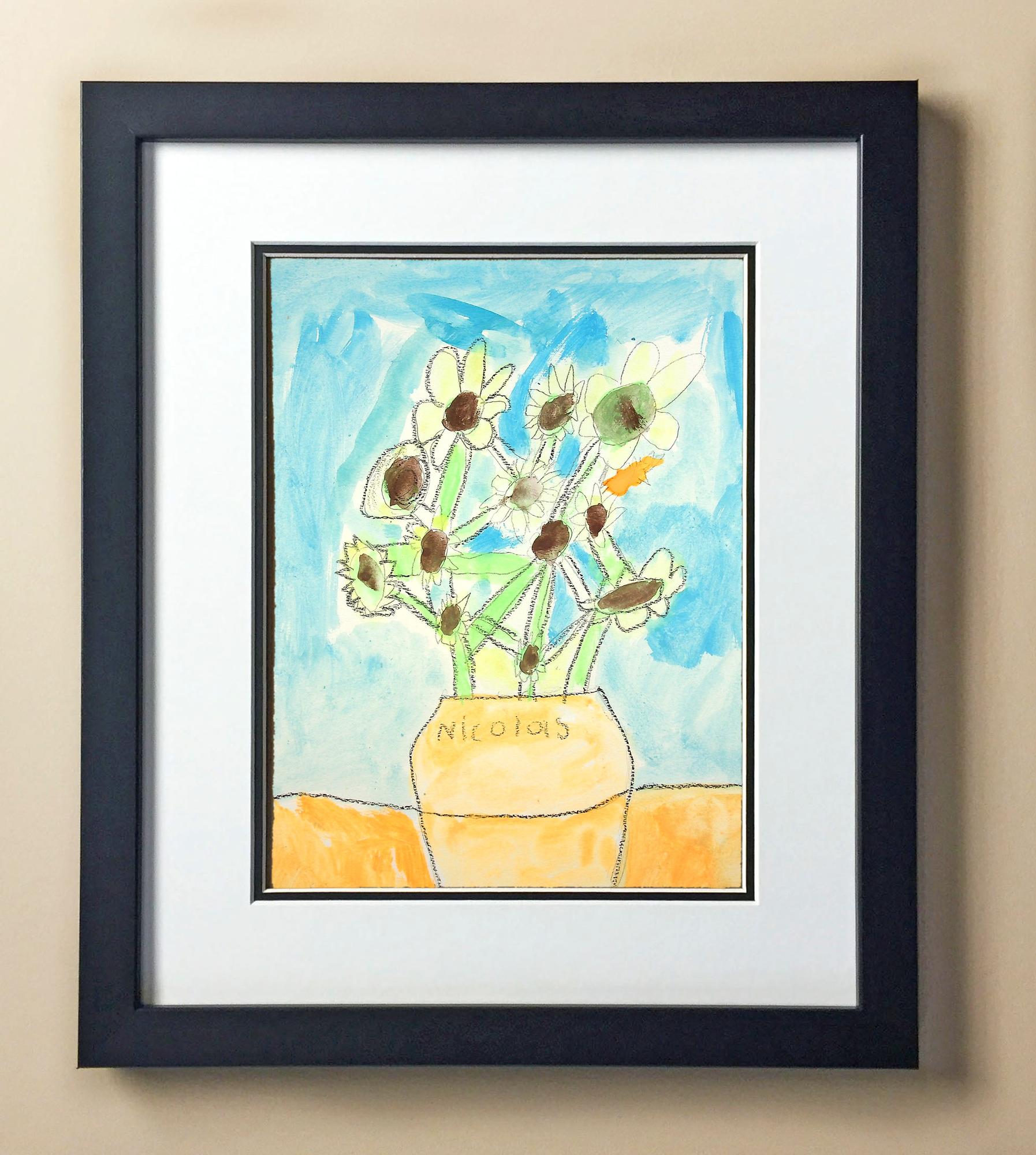Included with the purchase is the Students Artwork, Frame, double matboard, shatter proof plexiglass, and a ready to hang backerboard with turnbuttons
