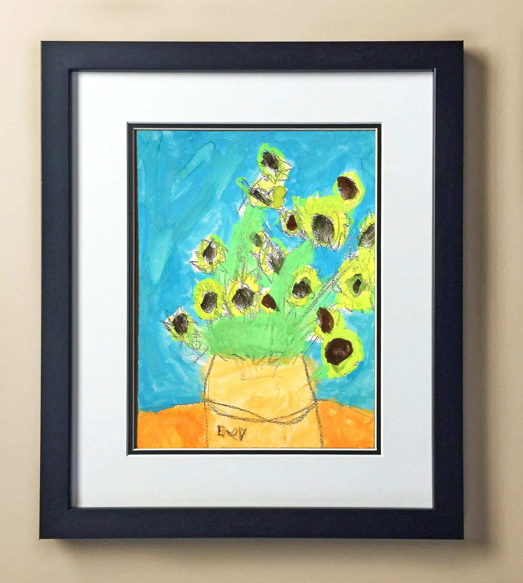 Included with the purchase is the Students Artwork, Frame, double matboard, shatter proof plexiglass, and a ready to hang backerboard with turnbuttons