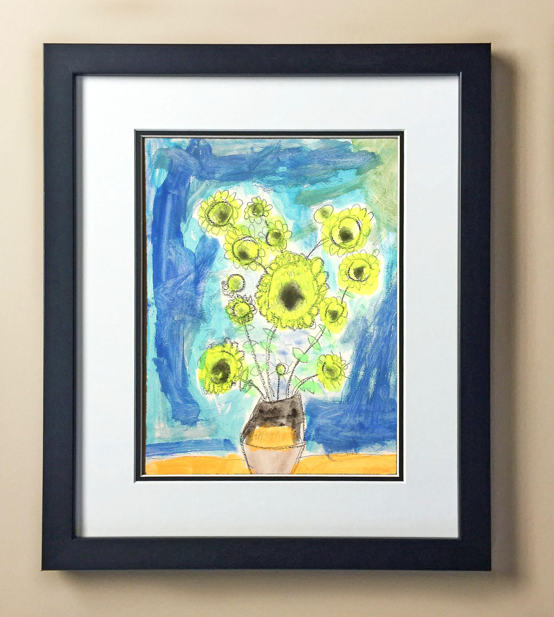 Included with the purchase is the Students Artwork, Frame, double matboard, shatter proof plexiglass, and a ready to hang backerboard with turnbuttons