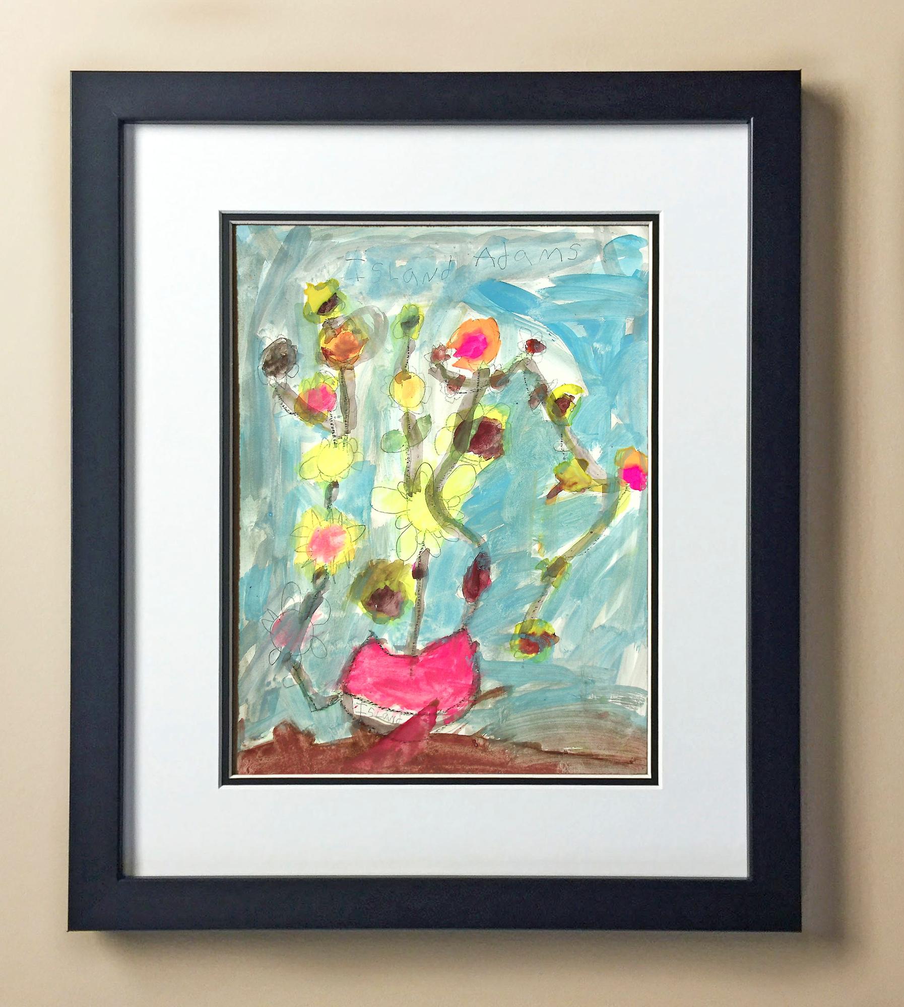 Included with the purchase is the Students Artwork, Frame, double matboard, shatter proof plexiglass, and a ready to hang backerboard with turnbuttons