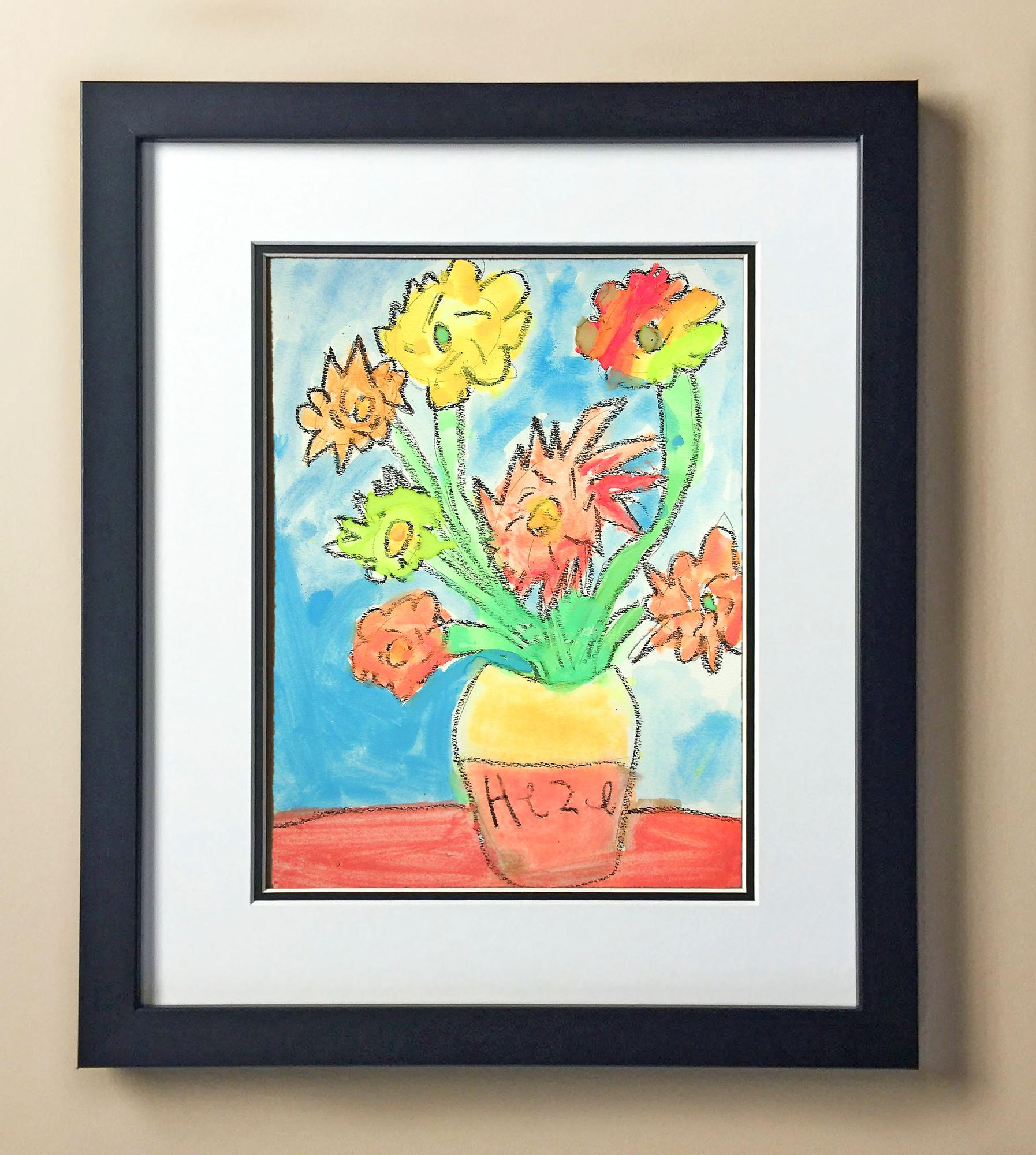 Included with the purchase is the Students Artwork, Frame, double matboard, shatter proof plexiglass, and a ready to hang backerboard with turnbuttons