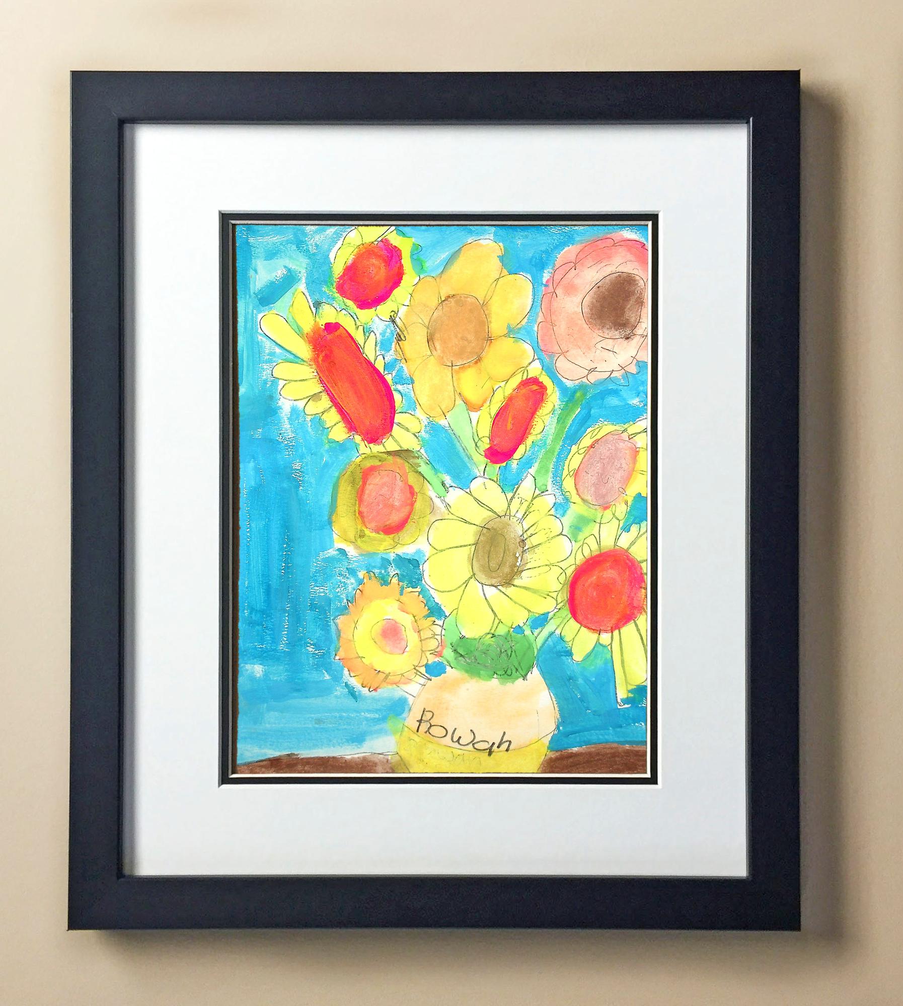 Included with the purchase is the Students Artwork, Frame, double matboard, shatter proof plexiglass, and a ready to hang backerboard with turnbuttons