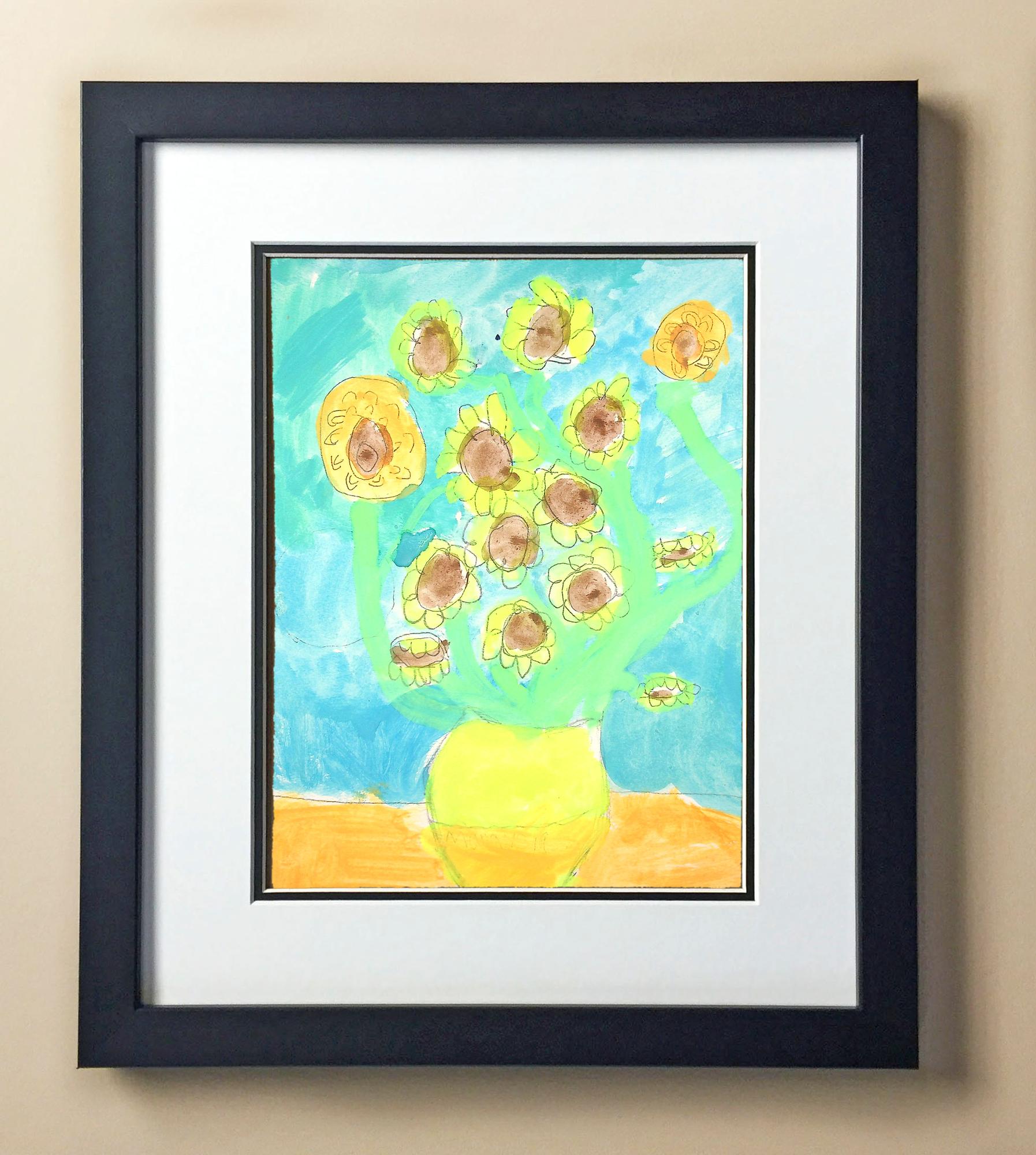 Included with the purchase is the Students Artwork, Frame, double matboard, shatter proof plexiglass, and a ready to hang backerboard with turnbuttons