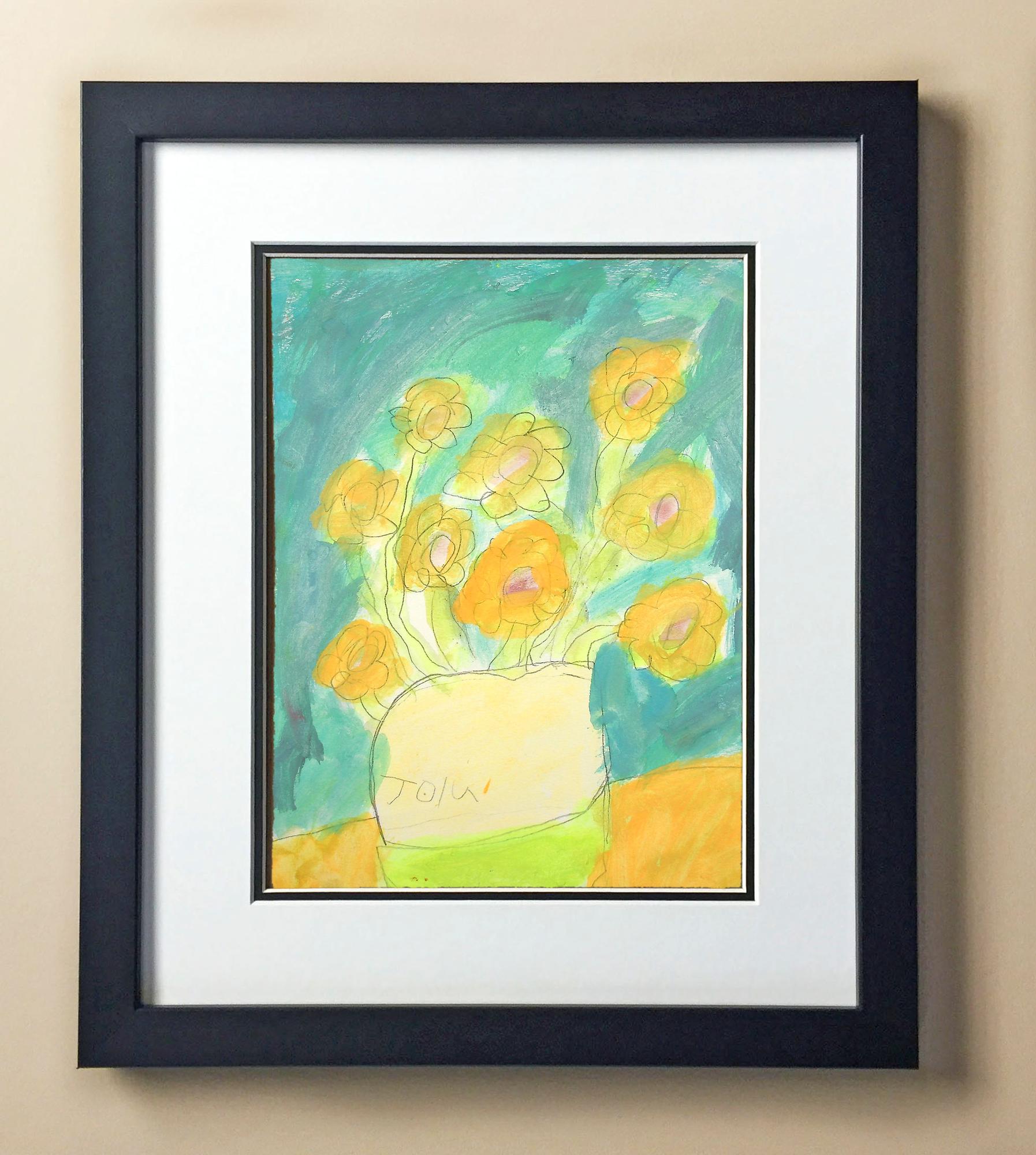 Included with the purchase is the Students Artwork, Frame, double matboard, shatter proof plexiglass, and a ready to hang backerboard with turnbuttons