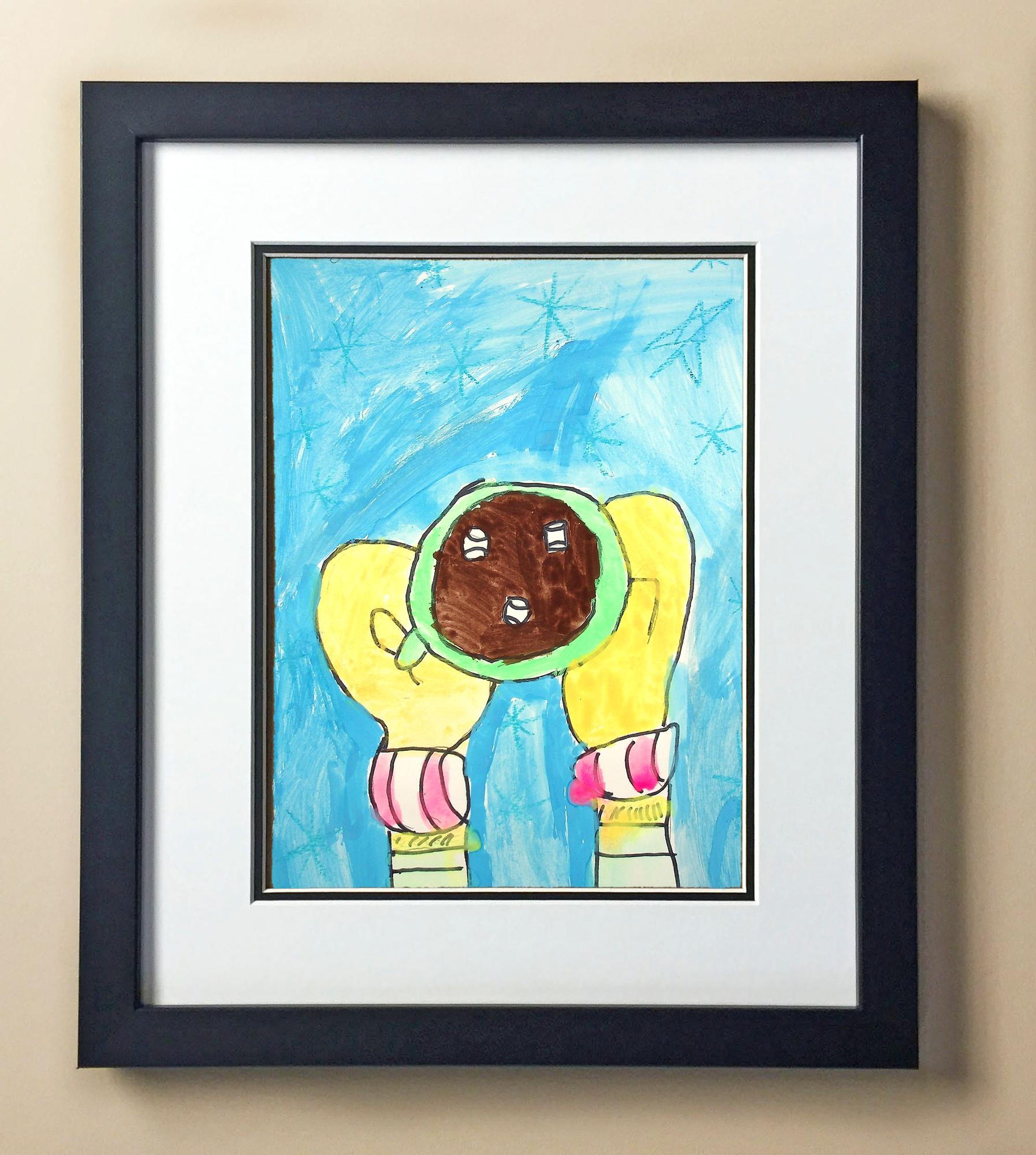 Included with the purchase is the Students Artwork, Frame, double matboard, shatter proof plexiglass, and a ready to hang backerboard with turnbuttons