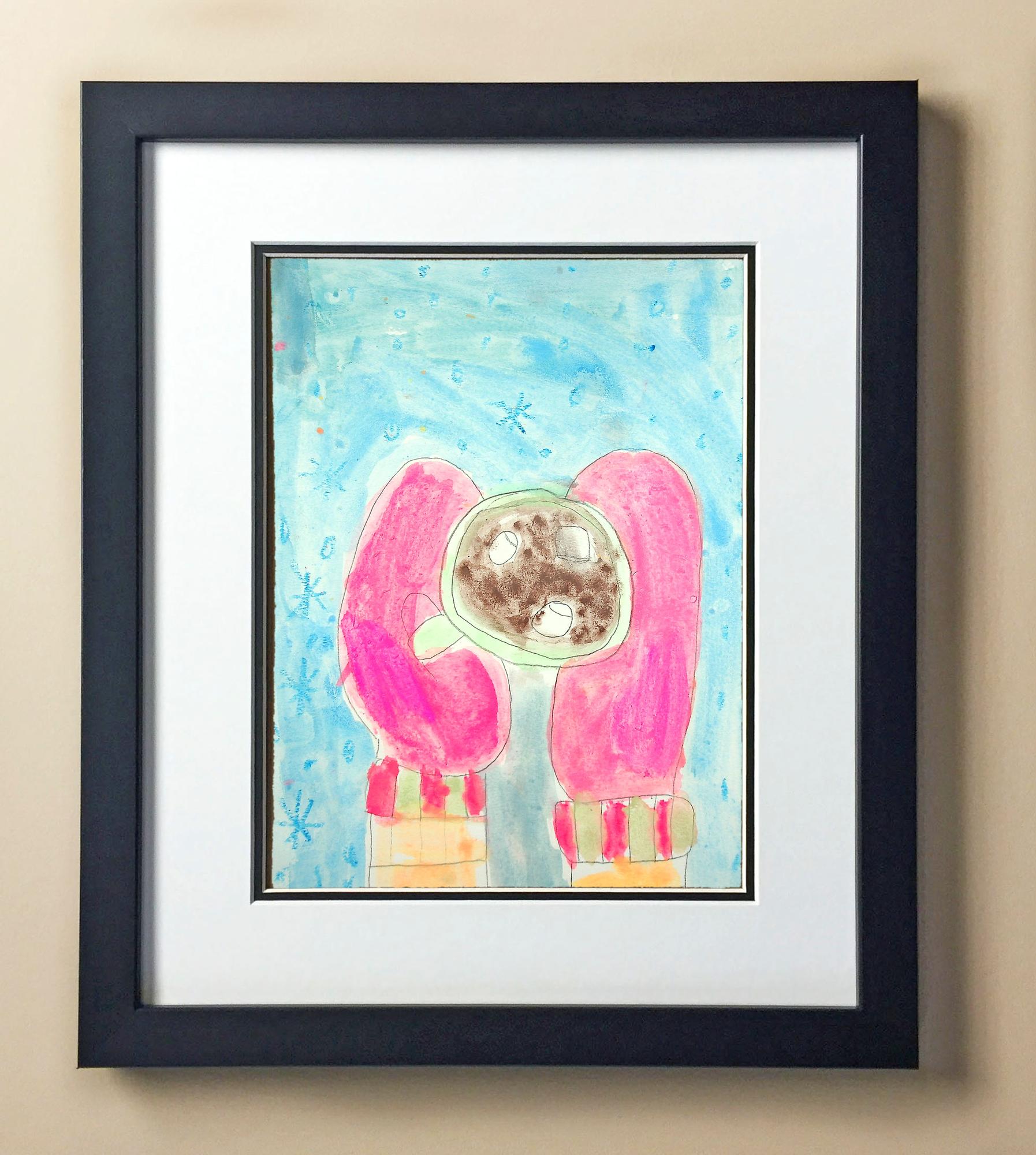 Included with the purchase is the Students Artwork, Frame, double matboard, shatter proof plexiglass, and a ready to hang backerboard with turnbuttons