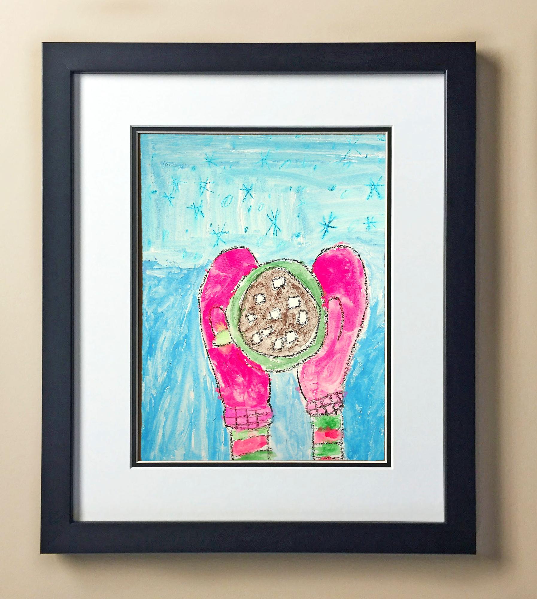 Included with the purchase is the Students Artwork, Frame, double matboard, shatter proof plexiglass, and a ready to hang backerboard with turnbuttons