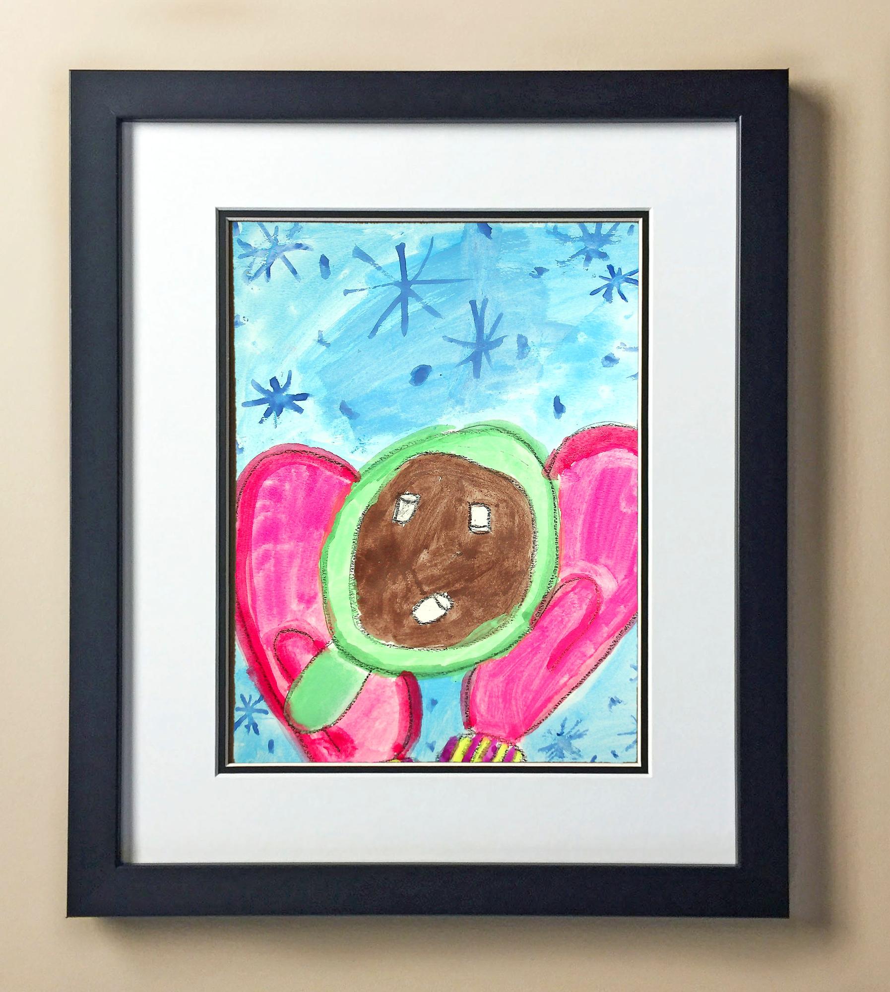Included with the purchase is the Students Artwork, Frame, double matboard, shatter proof plexiglass, and a ready to hang backerboard with turnbuttons