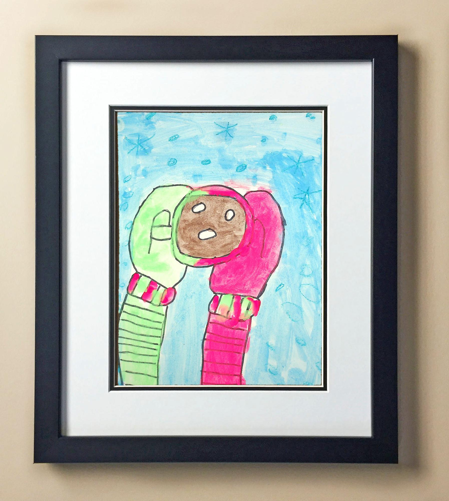 Included with the purchase is the Students Artwork, Frame, double matboard, shatter proof plexiglass, and a ready to hang backerboard with turnbuttons