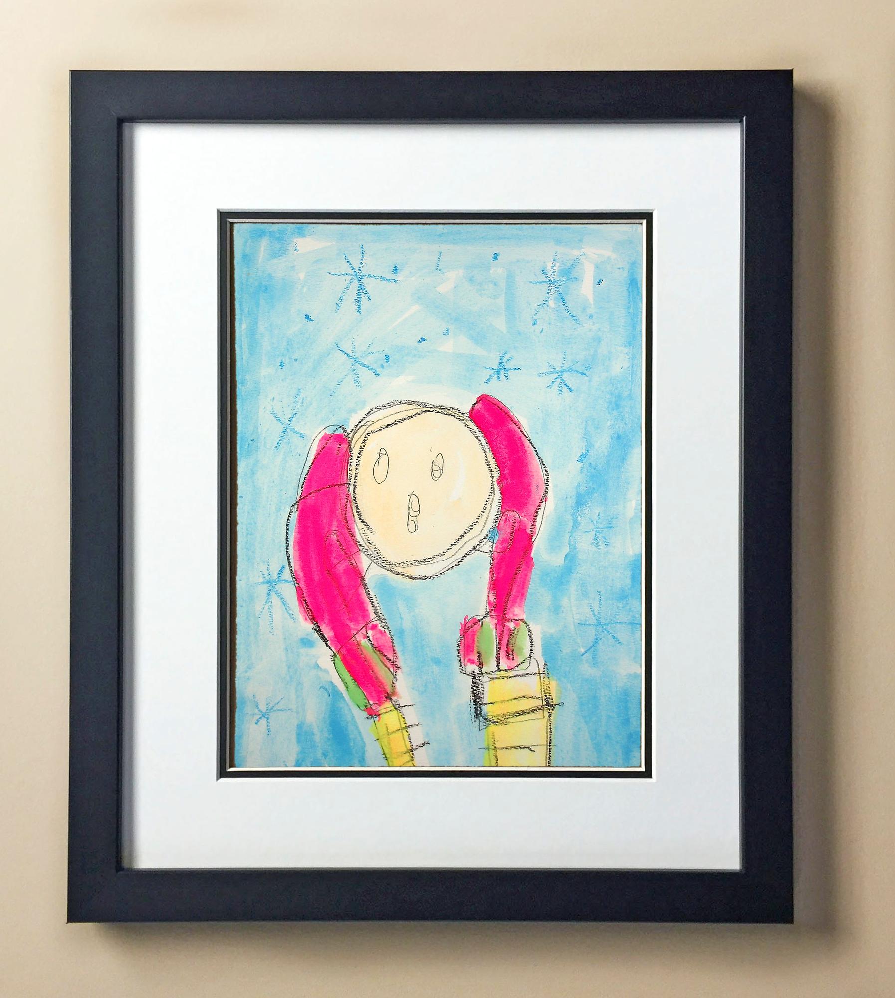 Included with the purchase is the Students Artwork, Frame, double matboard, shatter proof plexiglass, and a ready to hang backerboard with turnbuttons