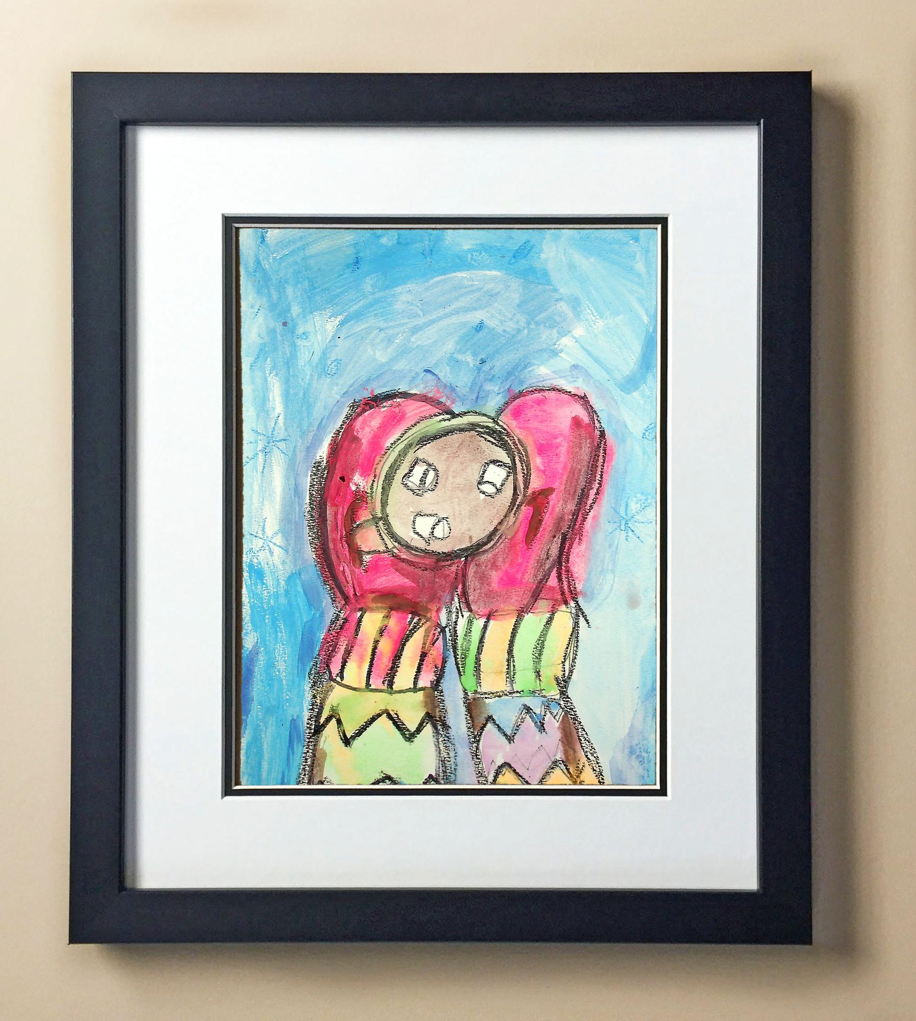 Included with the purchase is the Students Artwork, Frame, double matboard, shatter proof plexiglass, and a ready to hang backerboard with turnbuttons