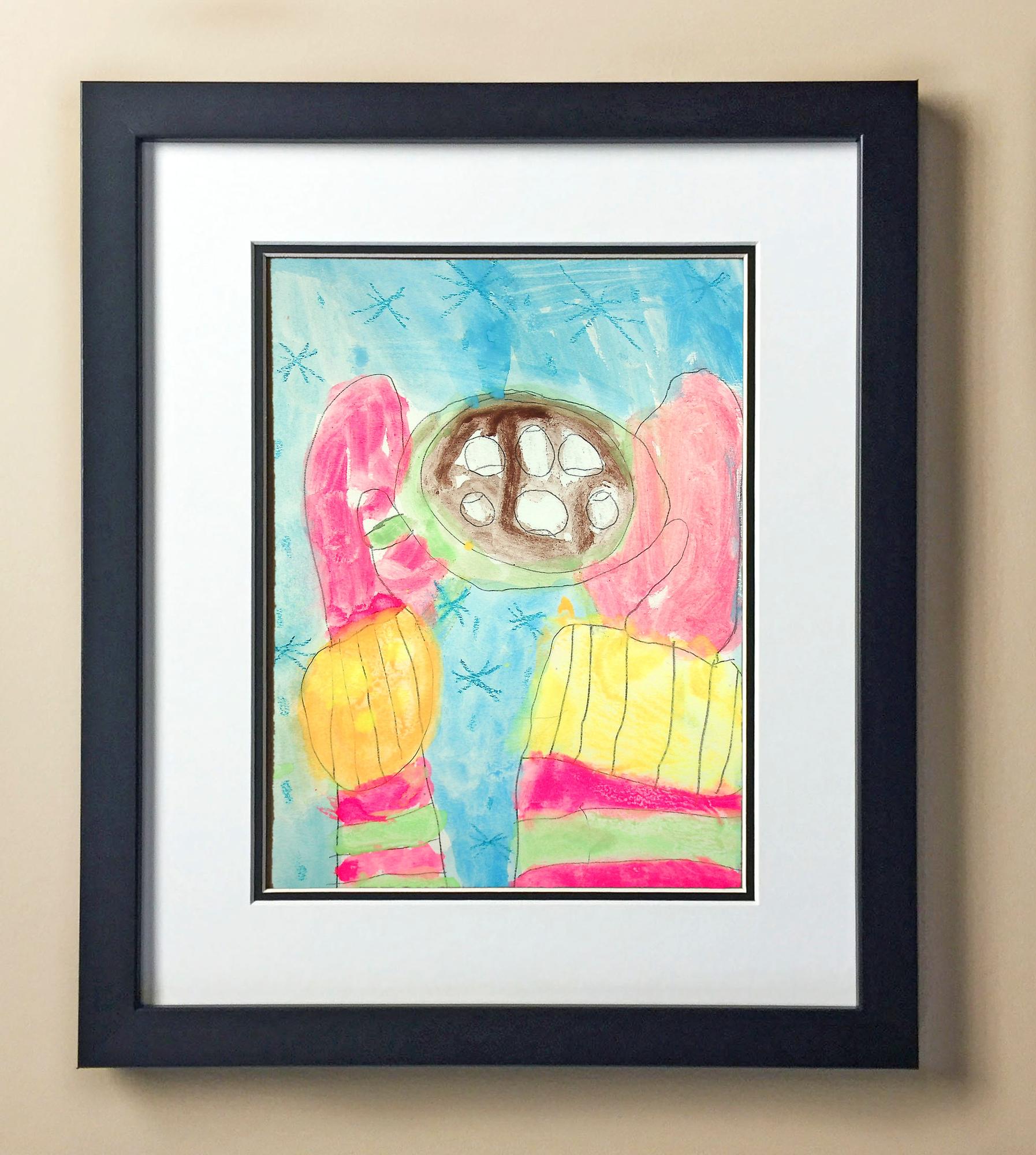 Included with the purchase is the Students Artwork, Frame, double matboard, shatter proof plexiglass, and a ready to hang backerboard with turnbuttons