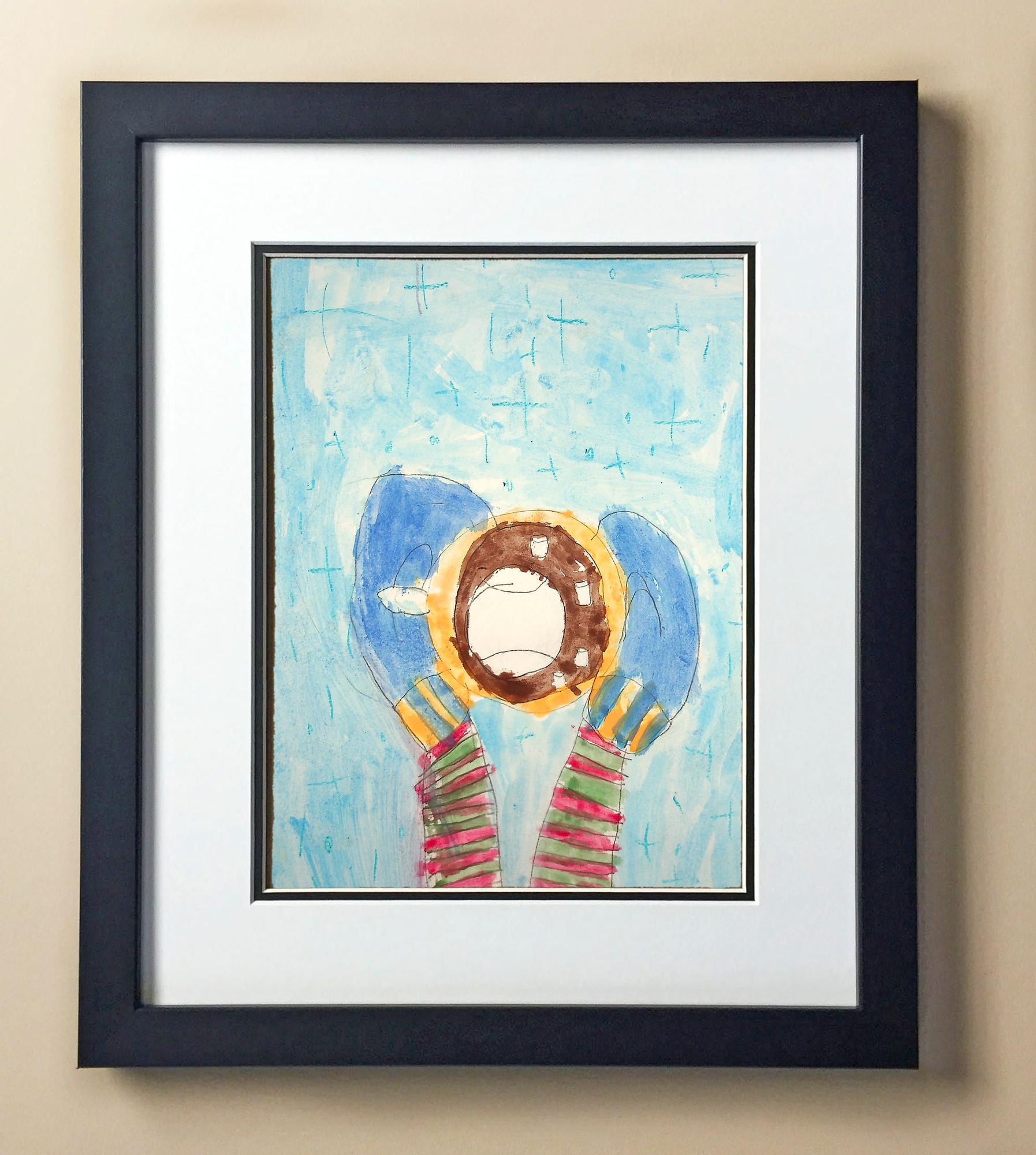Included with the purchase is the Students Artwork, Frame, double matboard, shatter proof plexiglass, and a ready to hang backerboard with turnbuttons