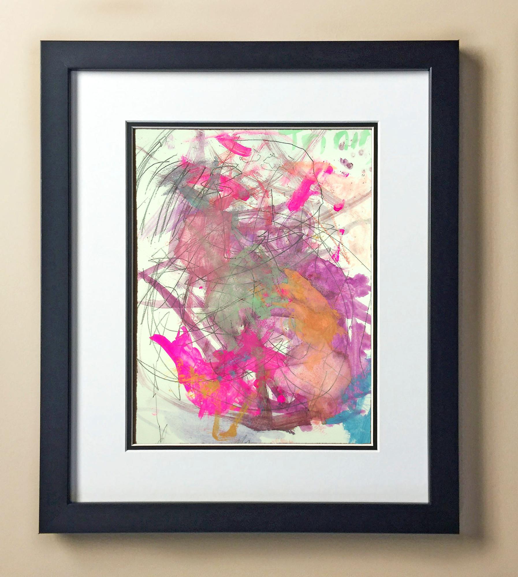 Included with the purchase is the Students Artwork, Frame, double matboard, shatter proof plexiglass, and a ready to hang backerboard with turnbuttons