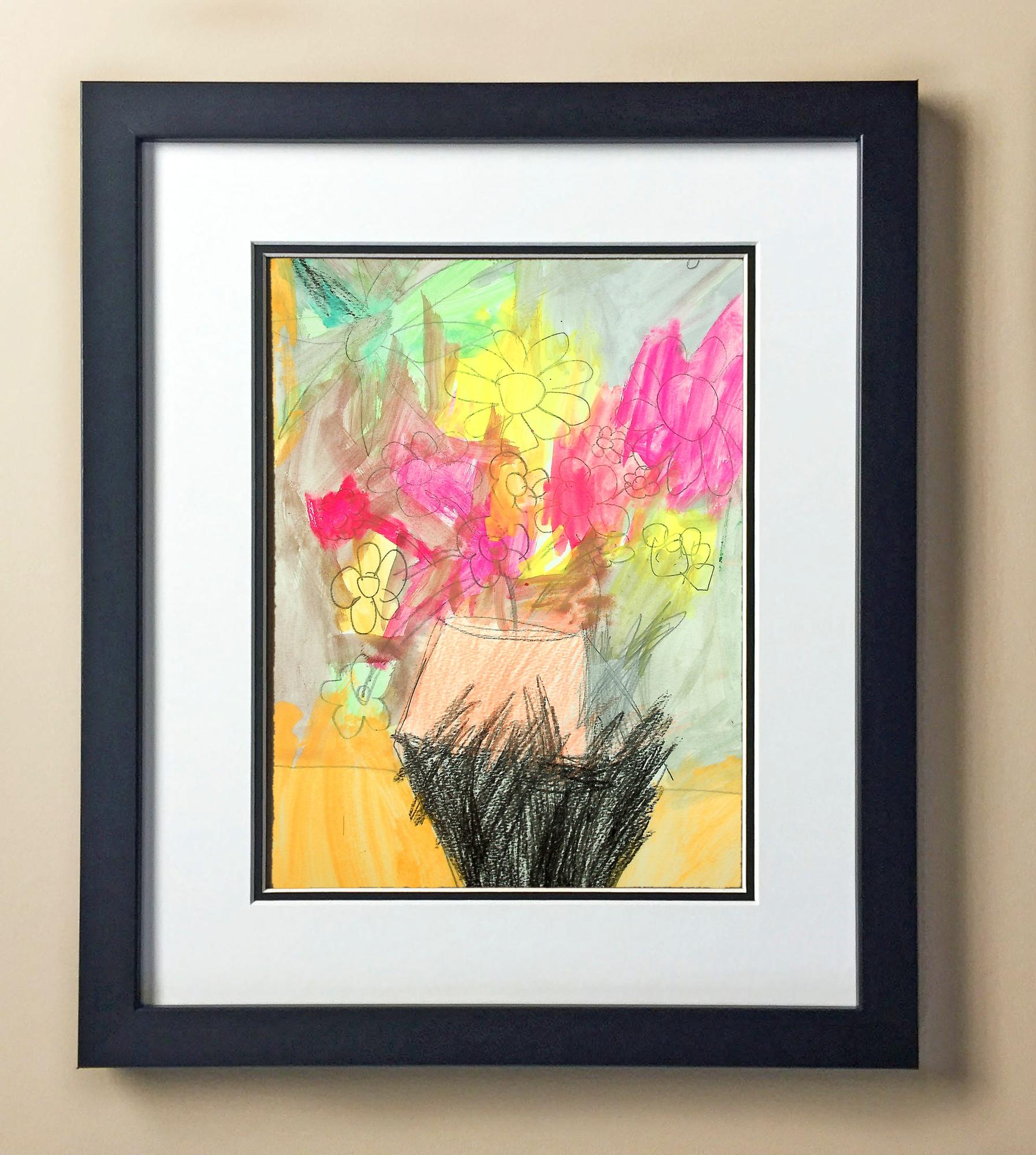 Included with the purchase is the Students Artwork, Frame, double matboard, shatter proof plexiglass, and a ready to hang backerboard with turnbuttons