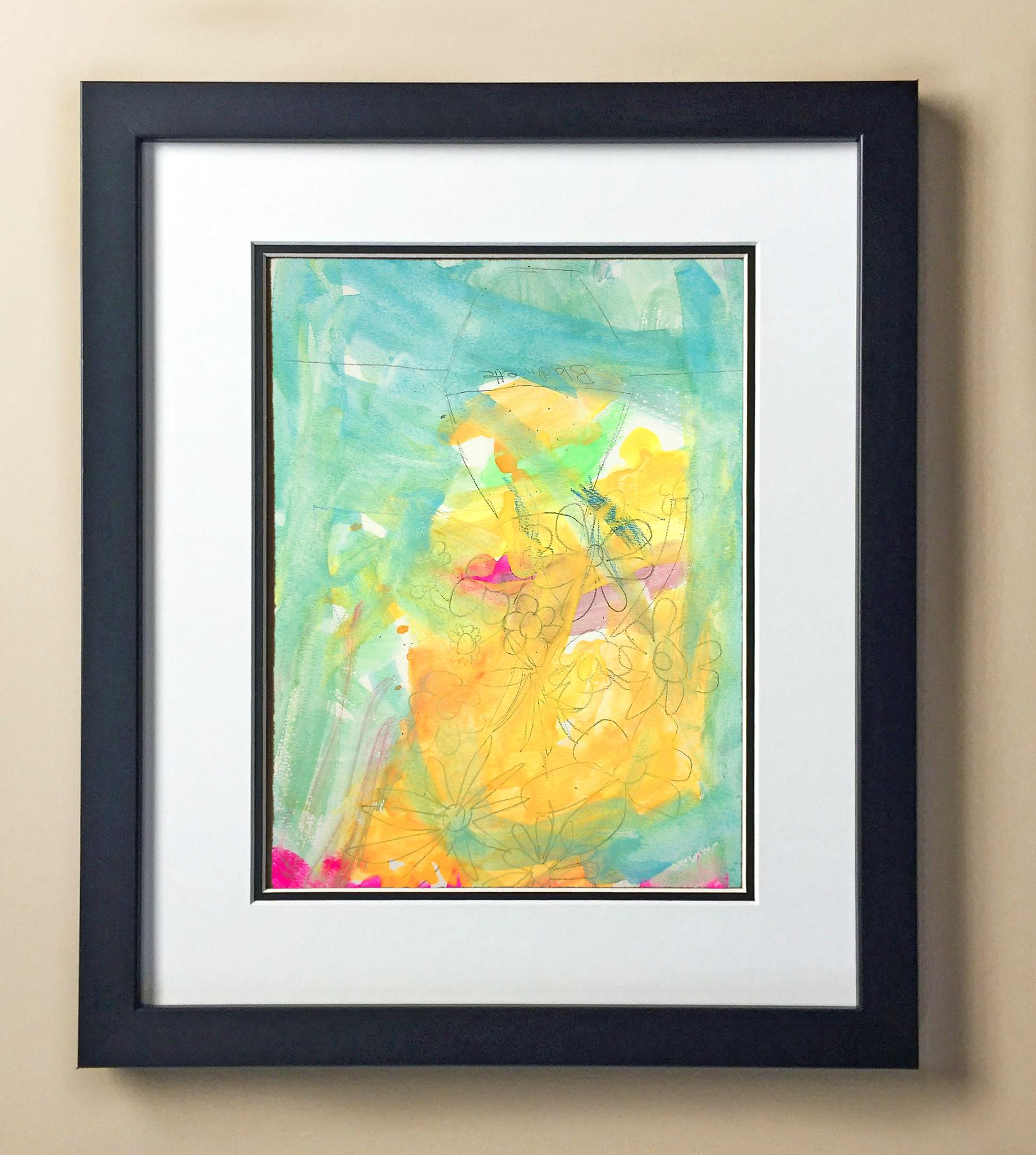 Included with the purchase is the Students Artwork, Frame, double matboard, shatter proof plexiglass, and a ready to hang backerboard with turnbuttons