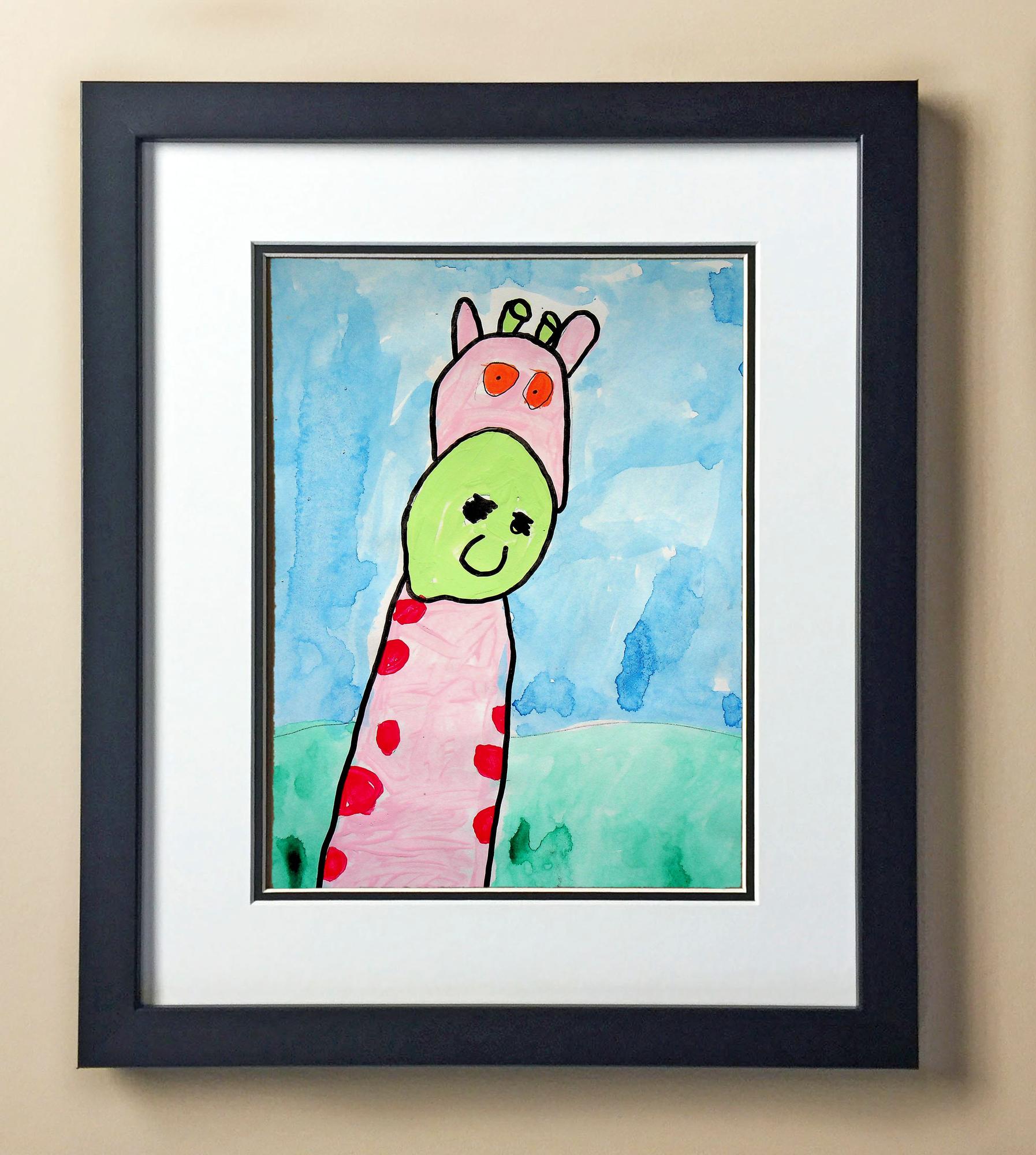Included with the purchase is the Students Artwork, Frame, double matboard, shatter proof plexiglass, and a ready to hang backerboard with turnbuttons