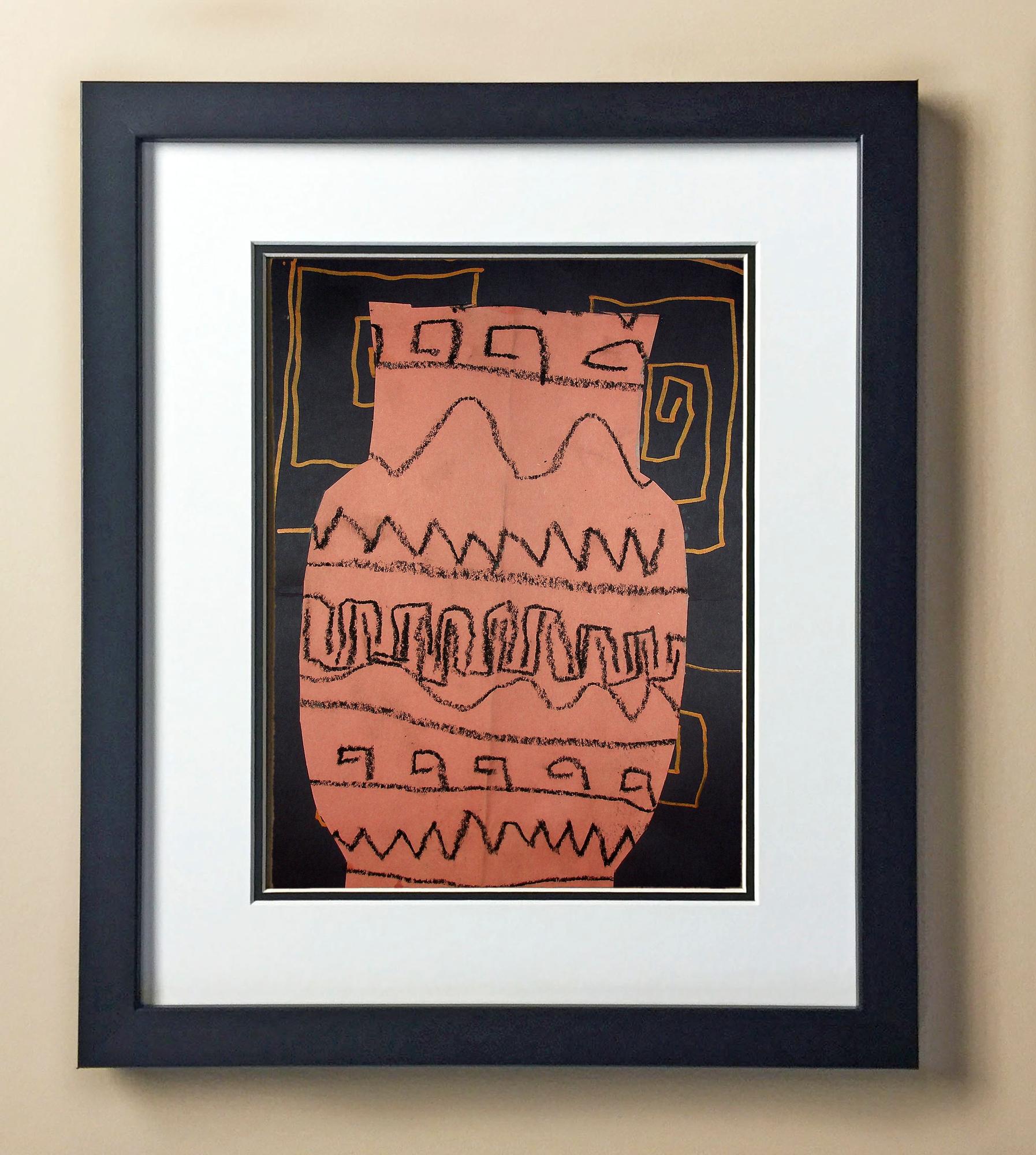 Included with the purchase is the Students Artwork, Frame, double matboard, shatter proof plexiglass, and a ready to hang backerboard with turnbuttons