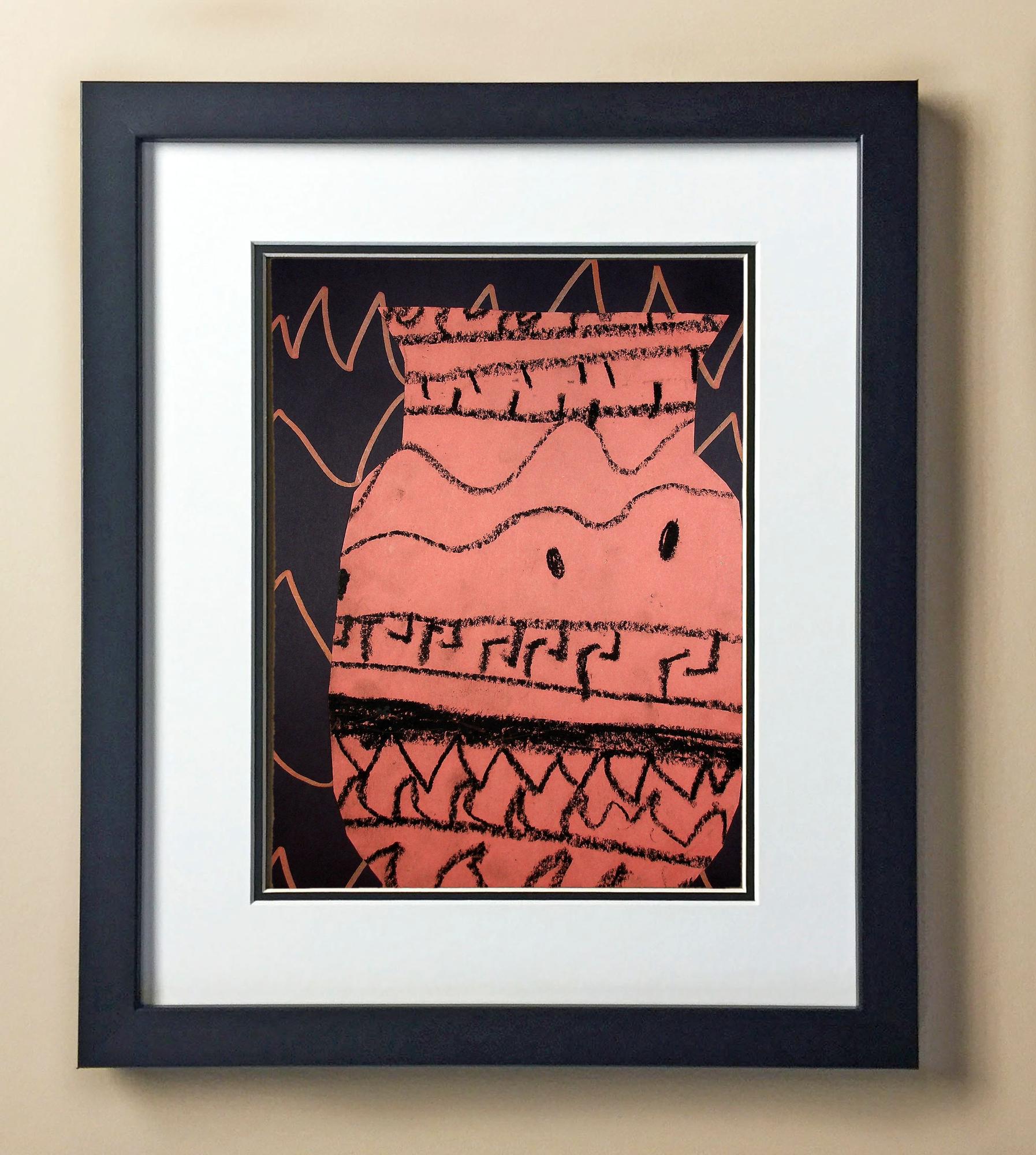Included with the purchase is the Students Artwork, Frame, double matboard, shatter proof plexiglass, and a ready to hang backerboard with turnbuttons
