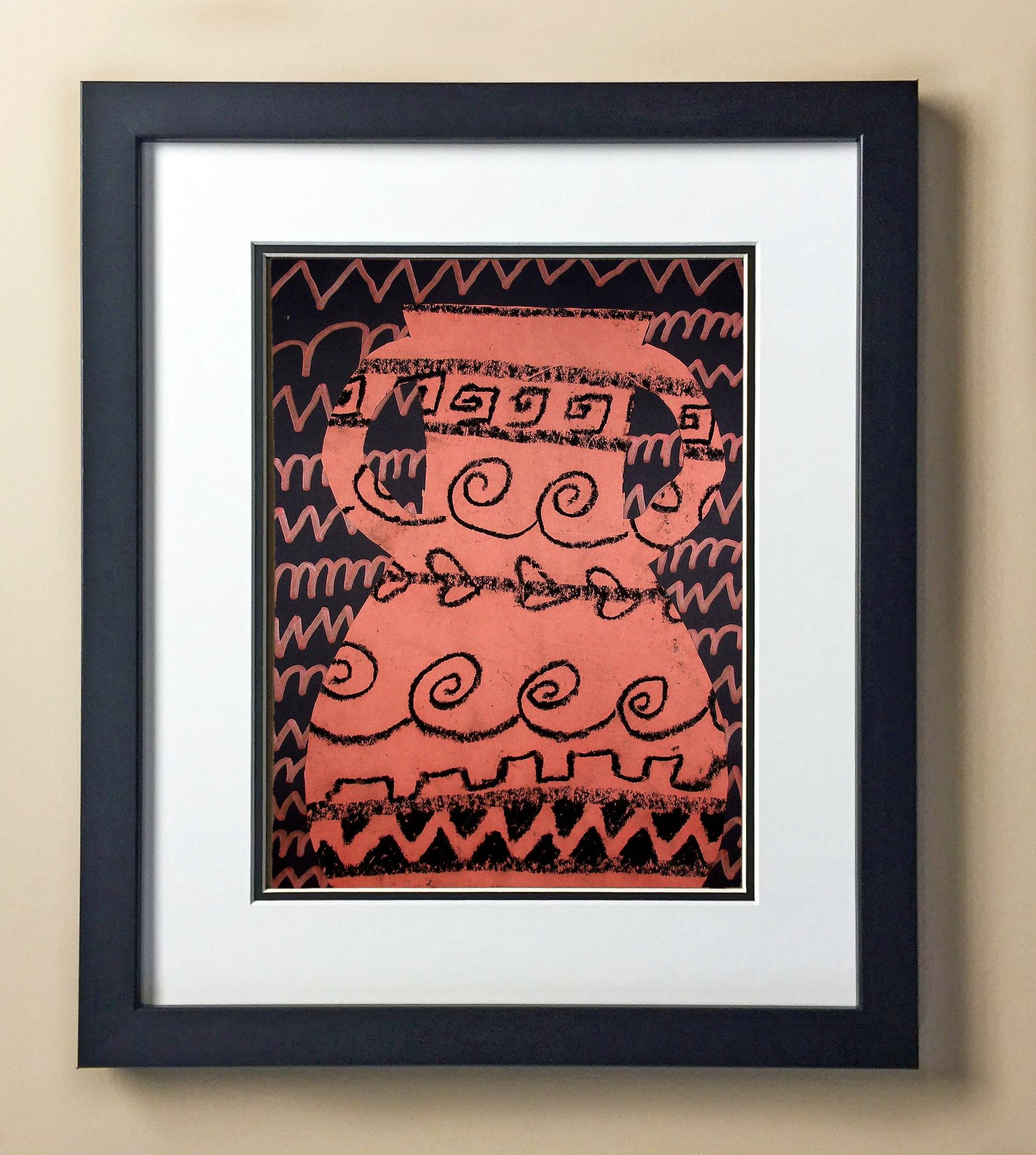 Included with the purchase is the Students Artwork, Frame, double matboard, shatter proof plexiglass, and a ready to hang backerboard with turnbuttons