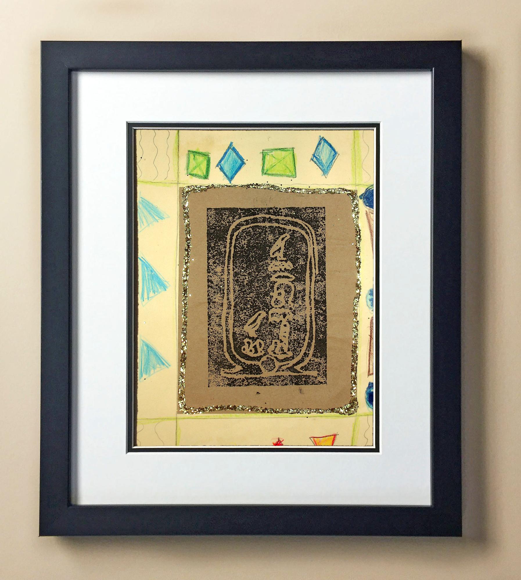 Included with the purchase is the Students Artwork, Frame, double matboard, shatter proof plexiglass, and a ready to hang backerboard with turnbuttons