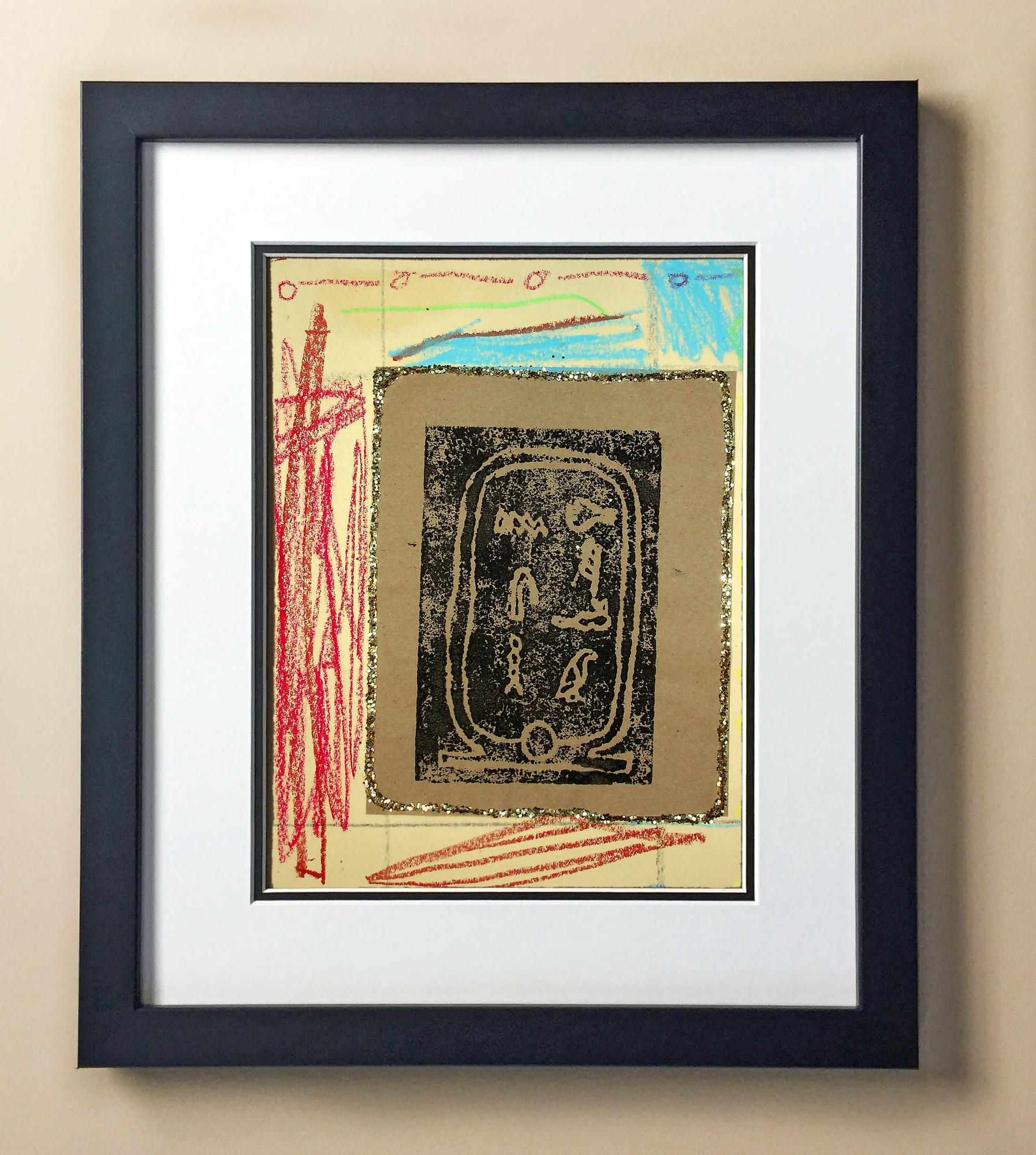 Included with the purchase is the Students Artwork, Frame, double matboard, shatter proof plexiglass, and a ready to hang backerboard with turnbuttons