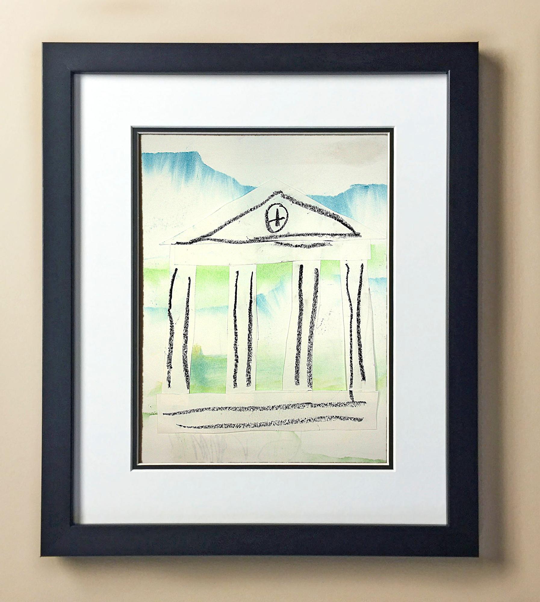 Included with the purchase is the Students Artwork, Frame, double matboard, shatter proof plexiglass, and a ready to hang backerboard with turnbuttons