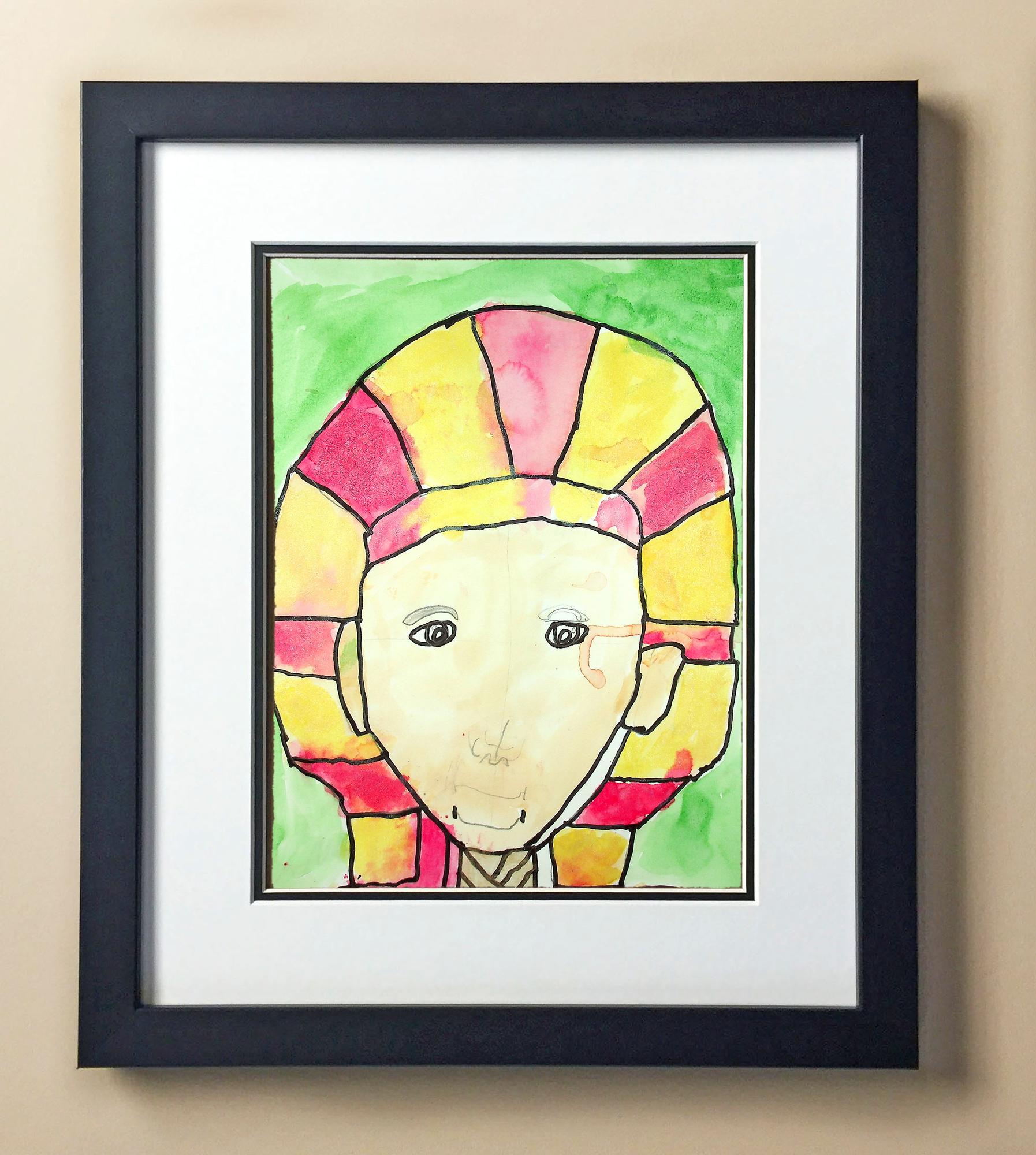 Included with the purchase is the Students Artwork, Frame, double matboard, shatter proof plexiglass, and a ready to hang backerboard with turnbuttons