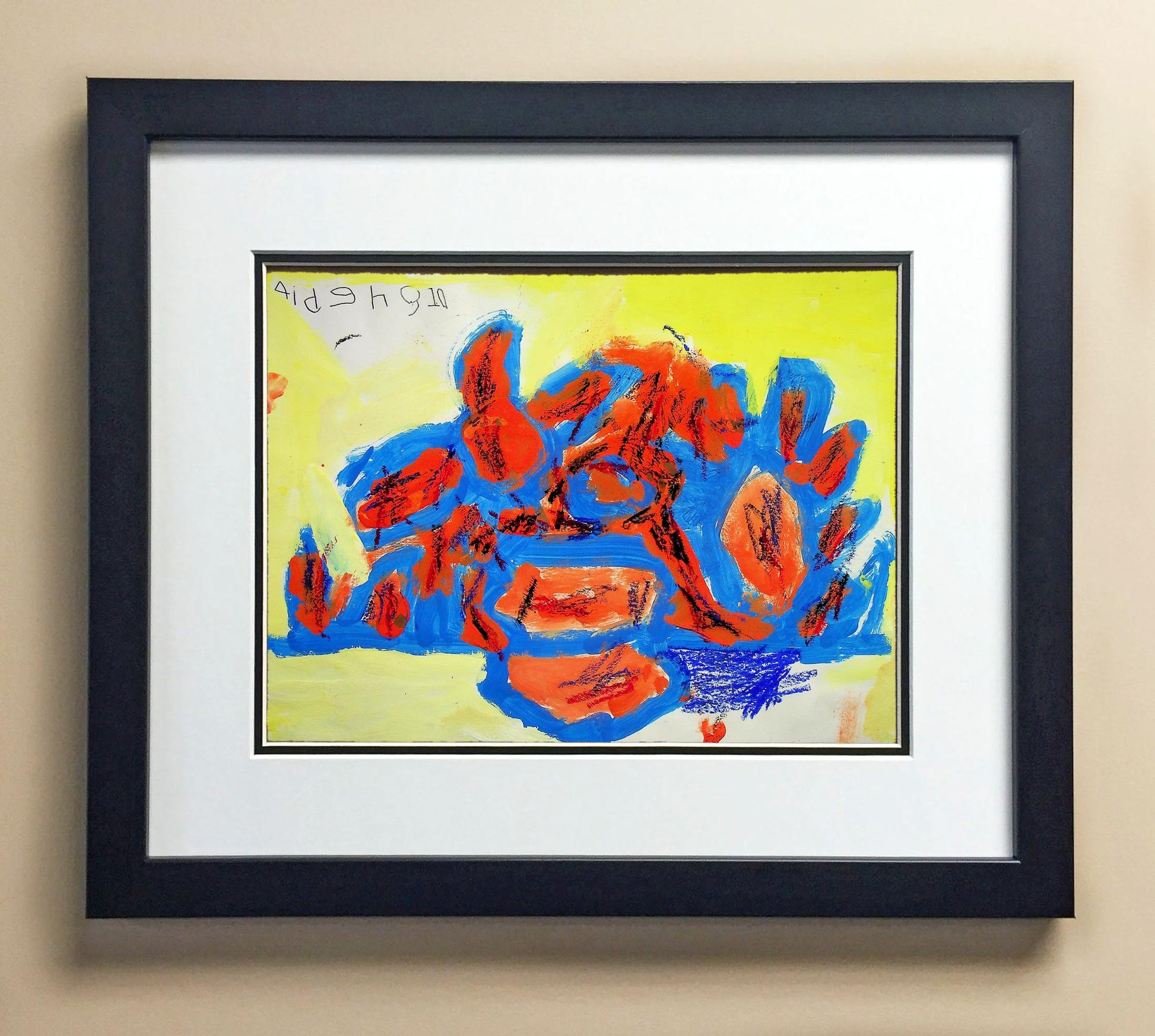 Included with the purchase is the Students Artwork, Frame, double matboard, shatter proof plexiglass, and a ready to hang backerboard with turnbuttons