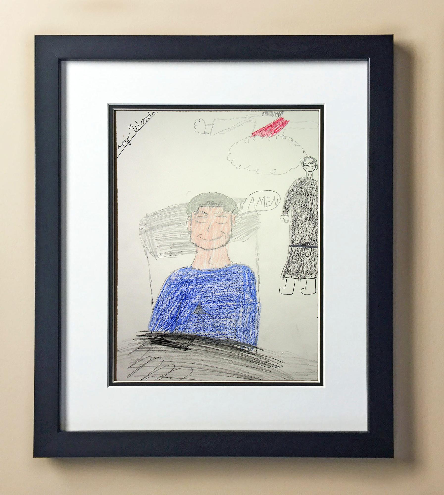 Included with the purchase is the Students Artwork, Frame, double matboard, shatter proof plexiglass, and a ready to hang backerboard with turnbuttons