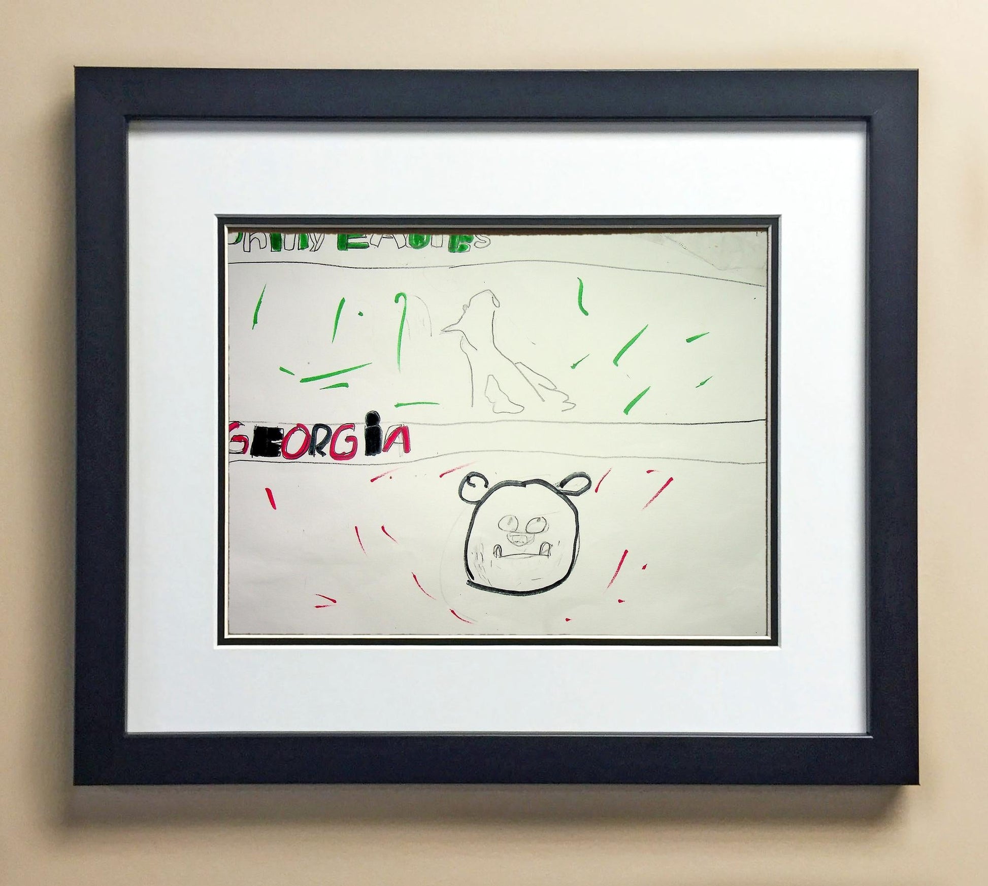 Included with the purchase is the Students Artwork, Frame, double matboard, shatter proof plexiglass, and a ready to hang backerboard with turnbuttons