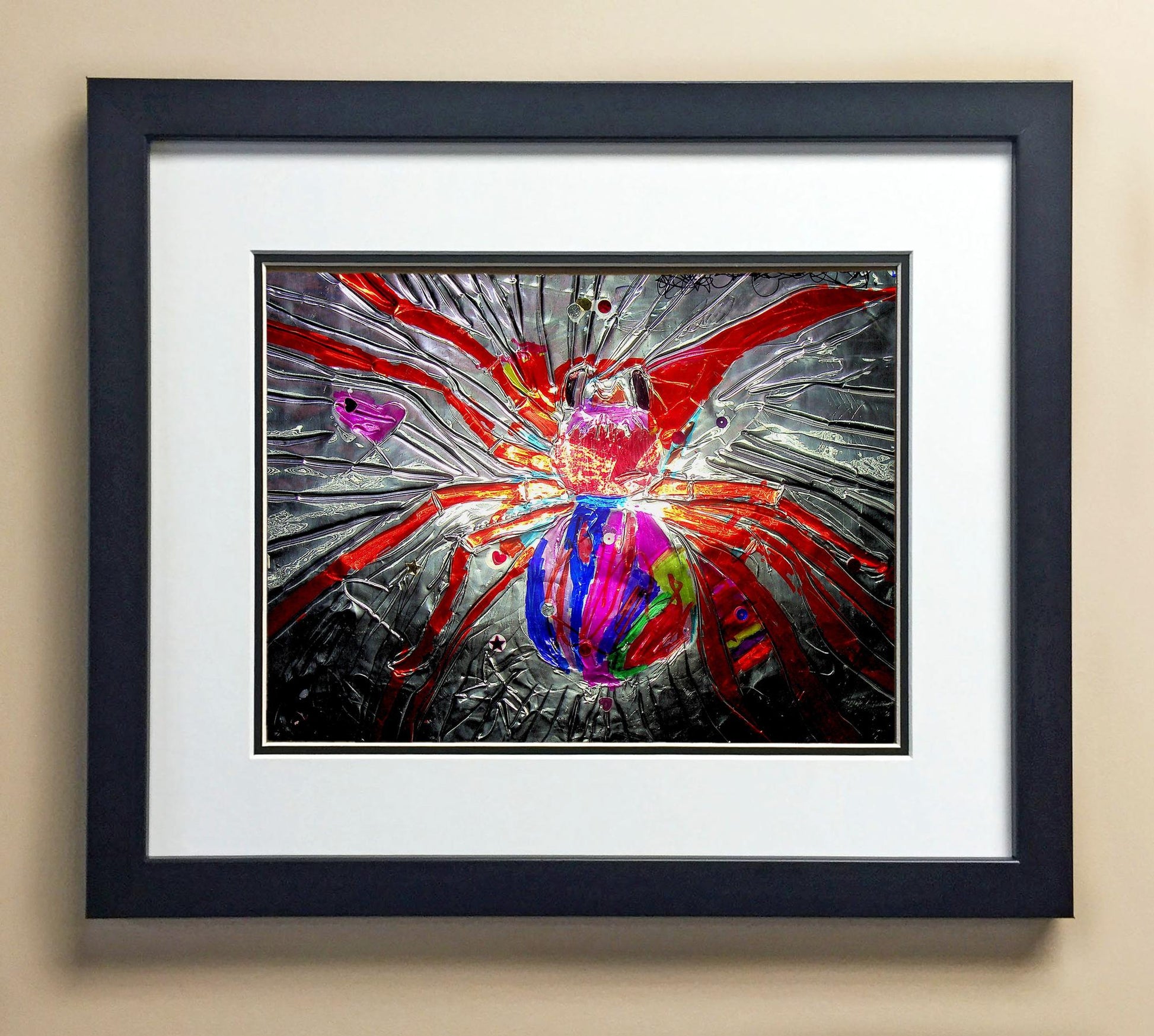 Included with the purchase is the Students Artwork, Frame, double matboard, shatter proof plexiglass, and a ready to hang backerboard with turnbuttons