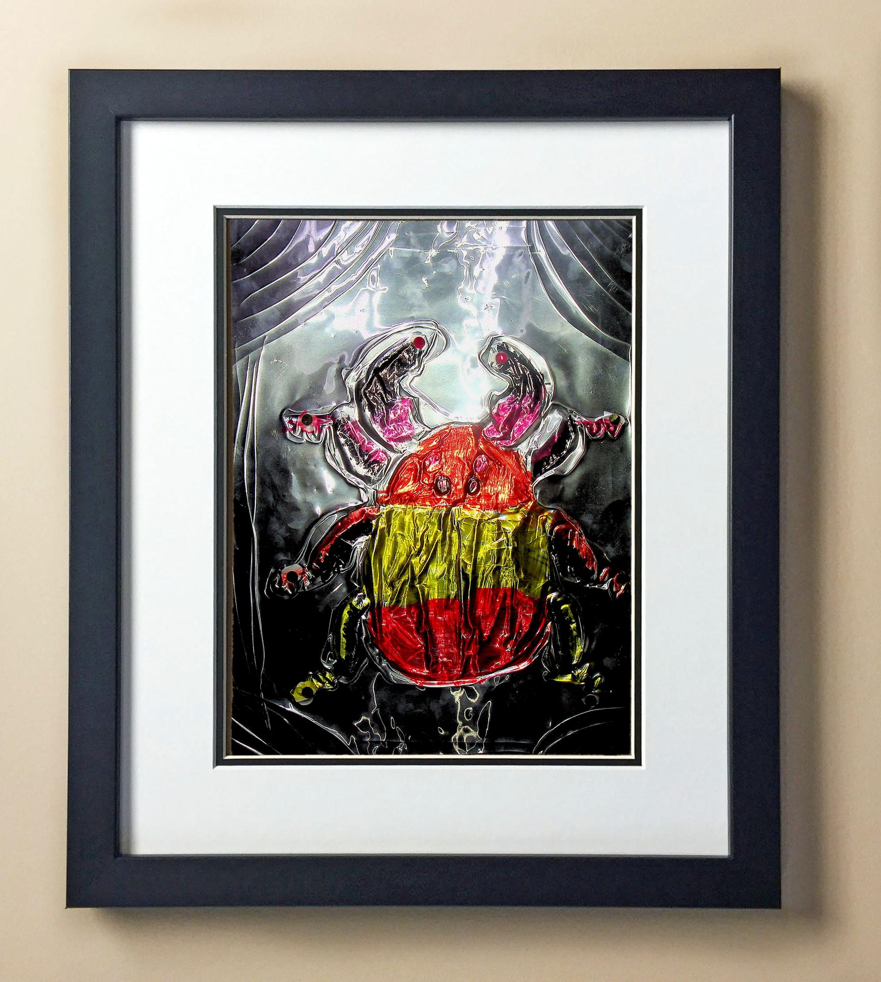 Included with the purchase is the Students Artwork, Frame, double matboard, shatter proof plexiglass, and a ready to hang backerboard with turnbuttons