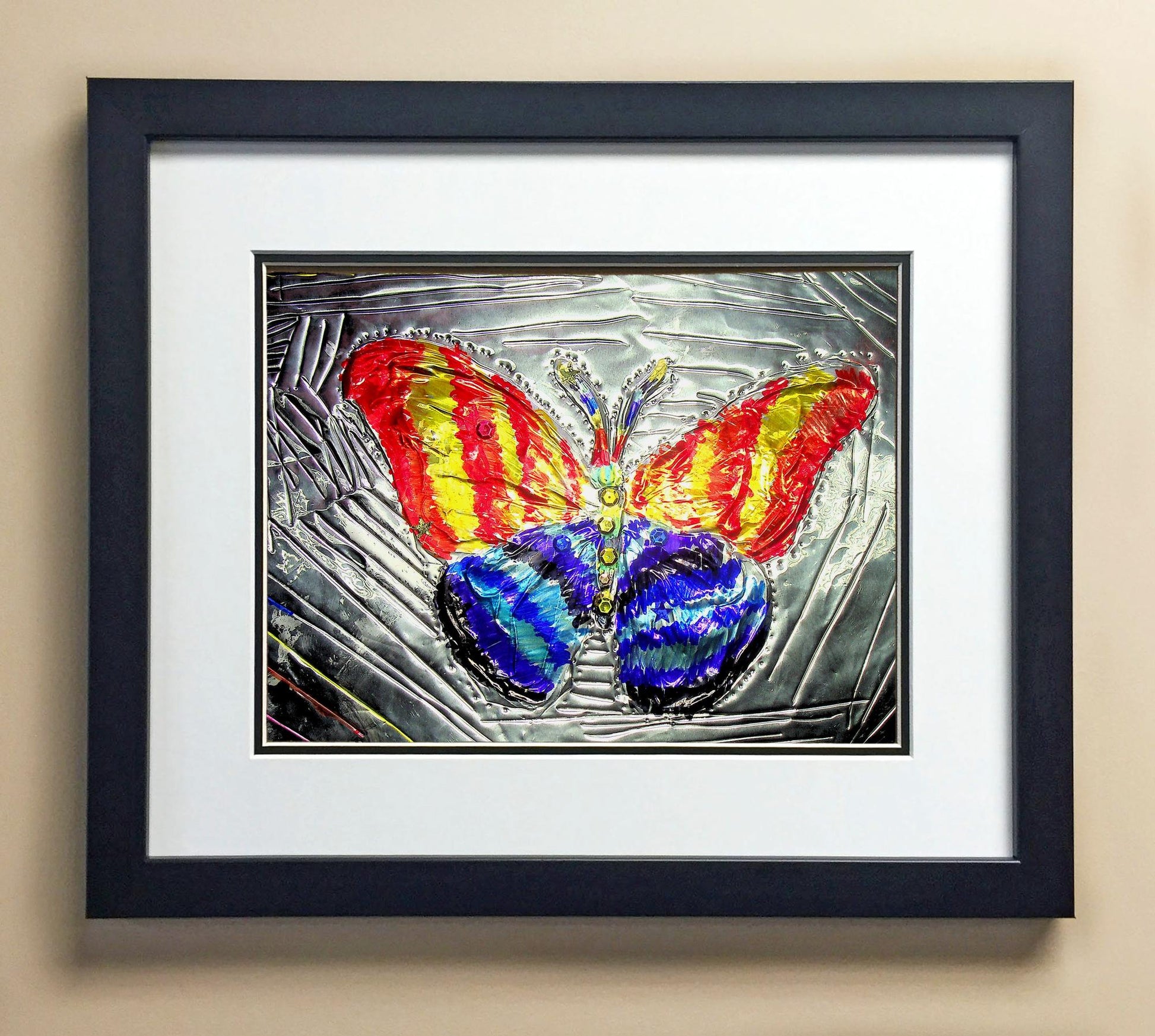 Included with the purchase is the Students Artwork, Frame, double matboard, shatter proof plexiglass, and a ready to hang backerboard with turnbuttons