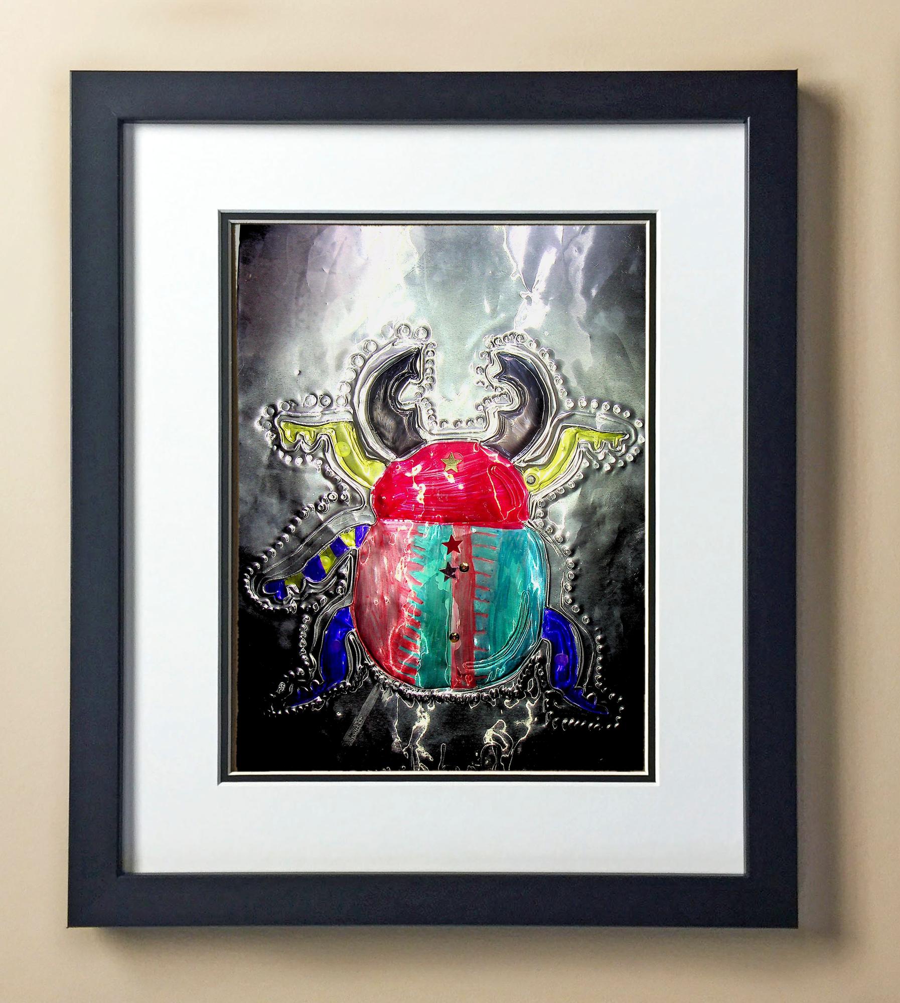 Included with the purchase is the Students Artwork, Frame, double matboard, shatter proof plexiglass, and a ready to hang backerboard with turnbuttons