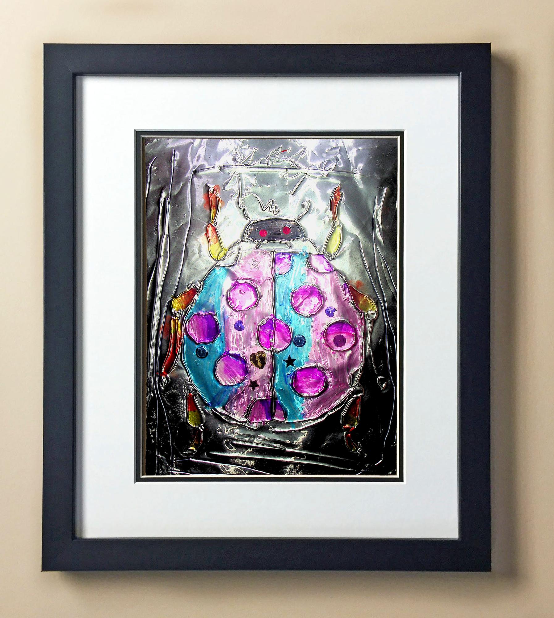 Included with the purchase is the Students Artwork, Frame, double matboard, shatter proof plexiglass, and a ready to hang backerboard with turnbuttons