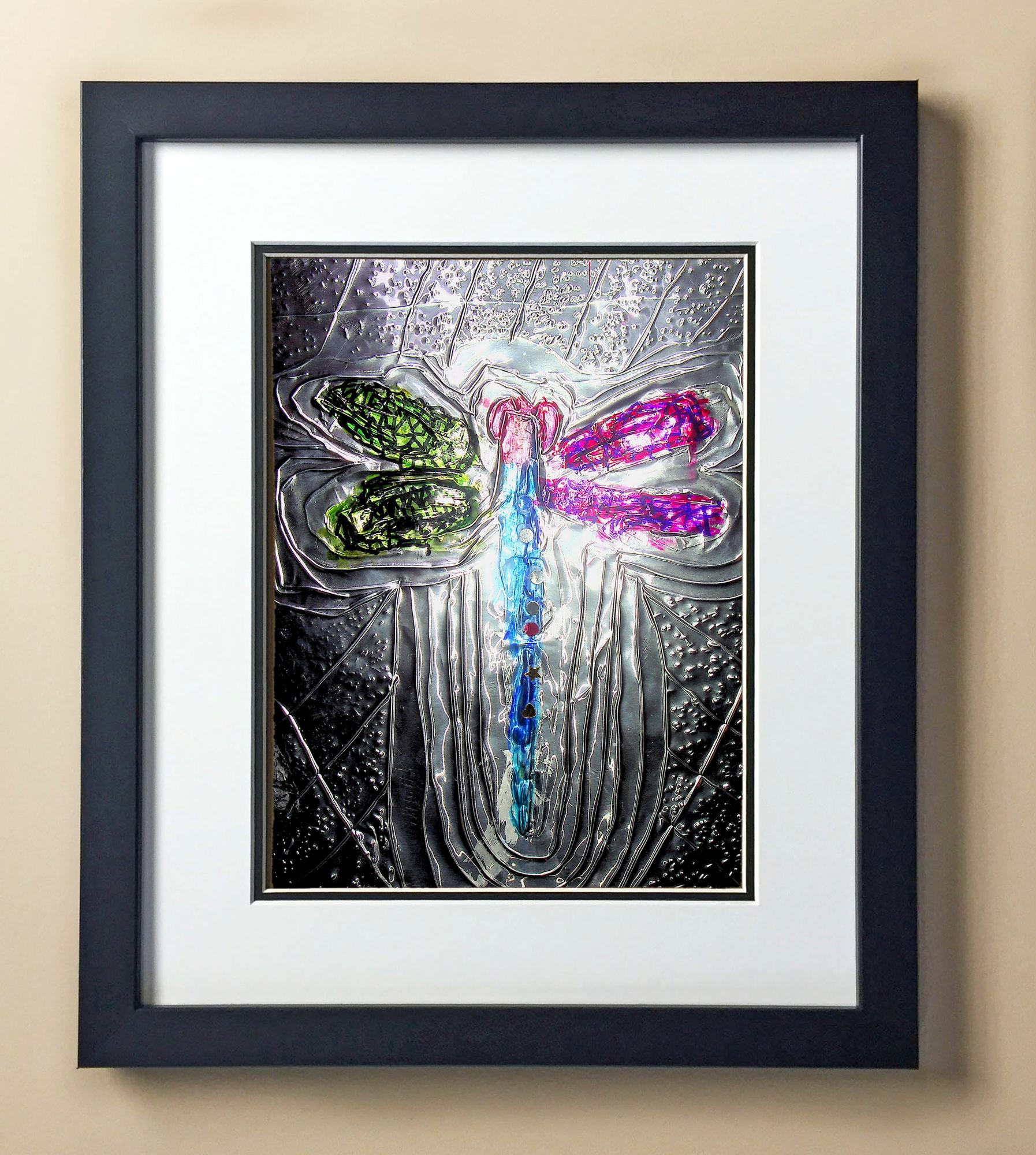 Included with the purchase is the Students Artwork, Frame, double matboard, shatter proof plexiglass, and a ready to hang backerboard with turnbuttons